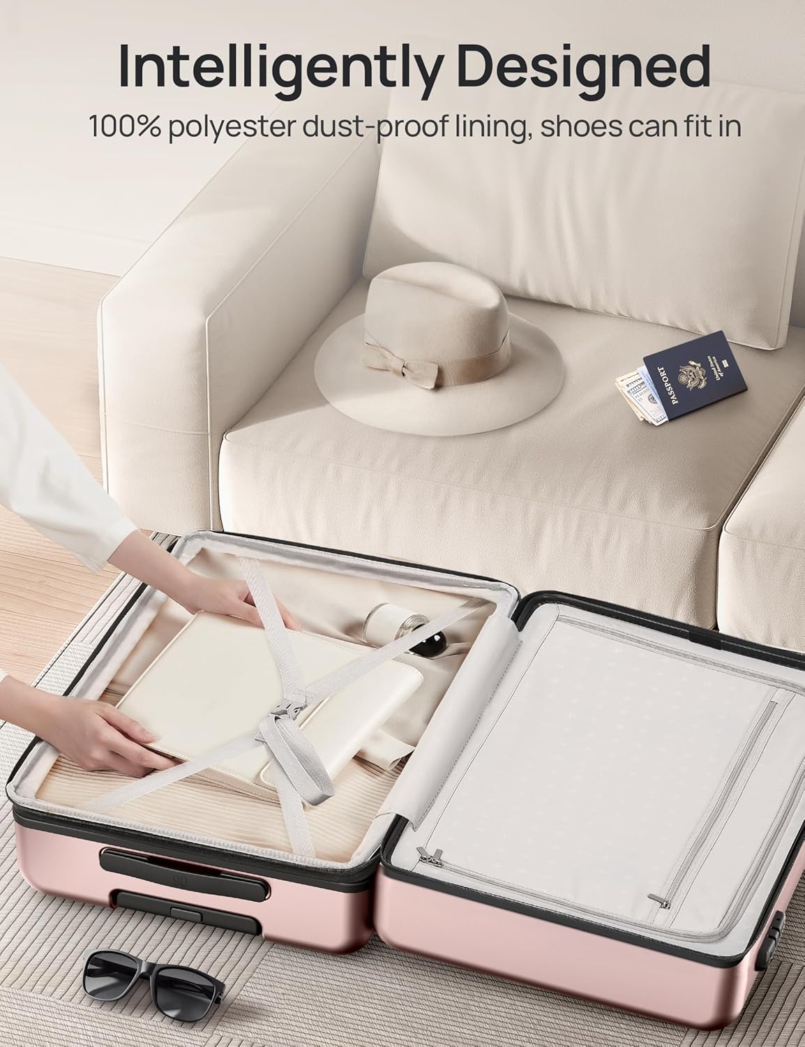 - 【TSA Lock Included】The built-in TSA-approved lock (default password: 0-0-0) ensures your belongings stay secure while allowing airport security to inspect your luggage without damage. Set your own password for added peace of mind.