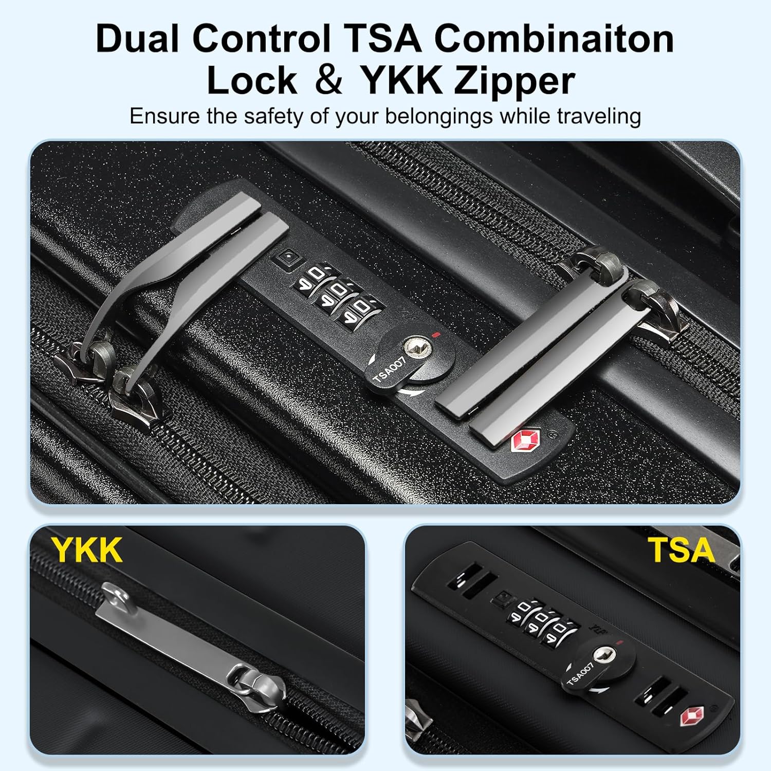 - Effortless Mobility and Enhanced Security: Enjoy smooth rolling with 360° silent double spinner wheels and added security with a TSA-approved dual-lock system and YKK zippers; muti-adjustable telescopic handle provides ergonomic comfort for travelers