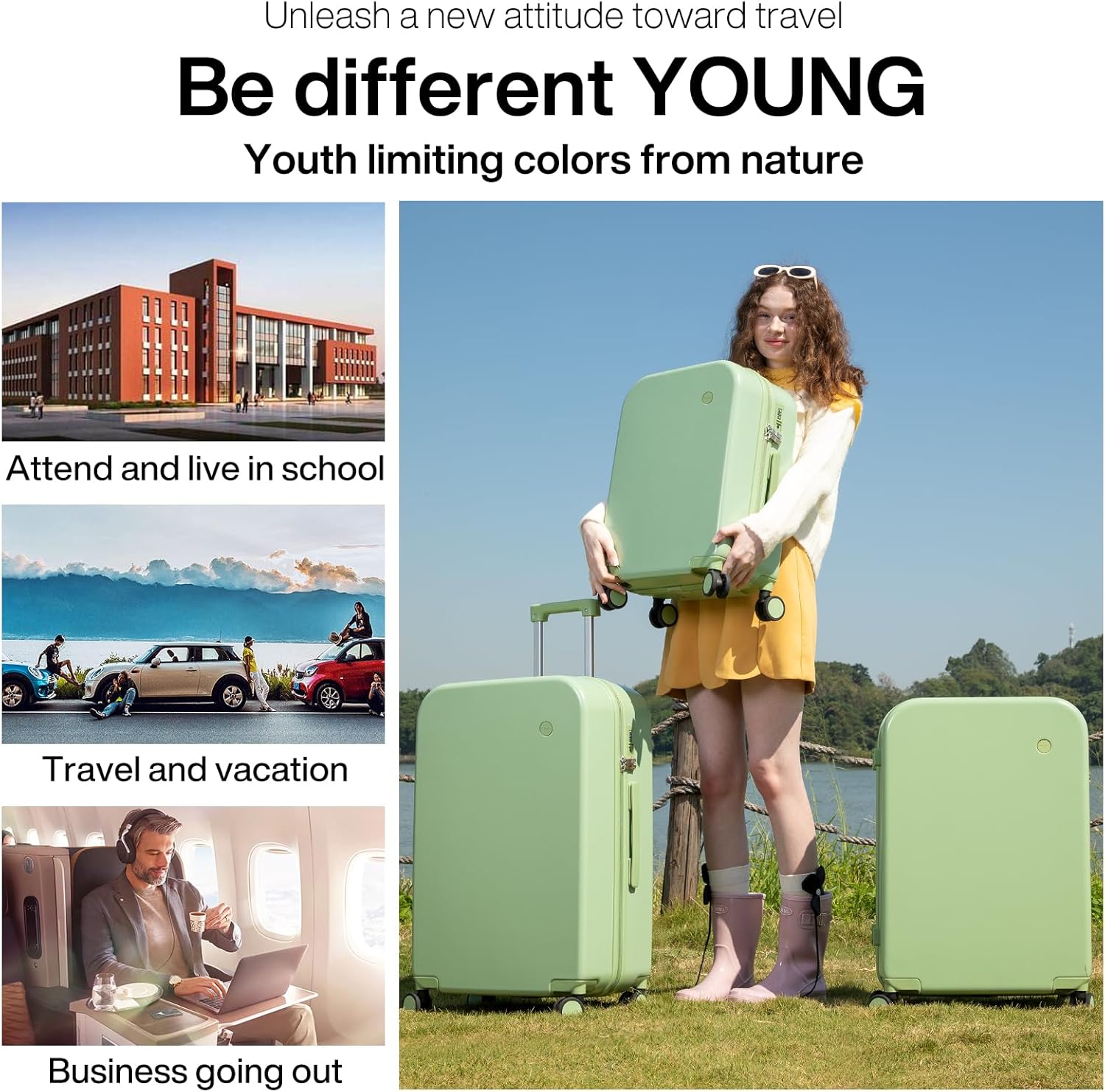 - Simple & Fashionable Suitcase, Combined with THREE-LAYER Bayer PC material which is called “Soft Steel” for hardshell, which make the luggage durable, wearable and lighter than ABS or ABS+PC suitcases. The color of this series hardside rolling suitcase is fashionable and bright and available in 16in 20in 22in 24in 26in 28in, please check our size chart/description carefully before placing an order and choose the right one for the upcoming travel.
