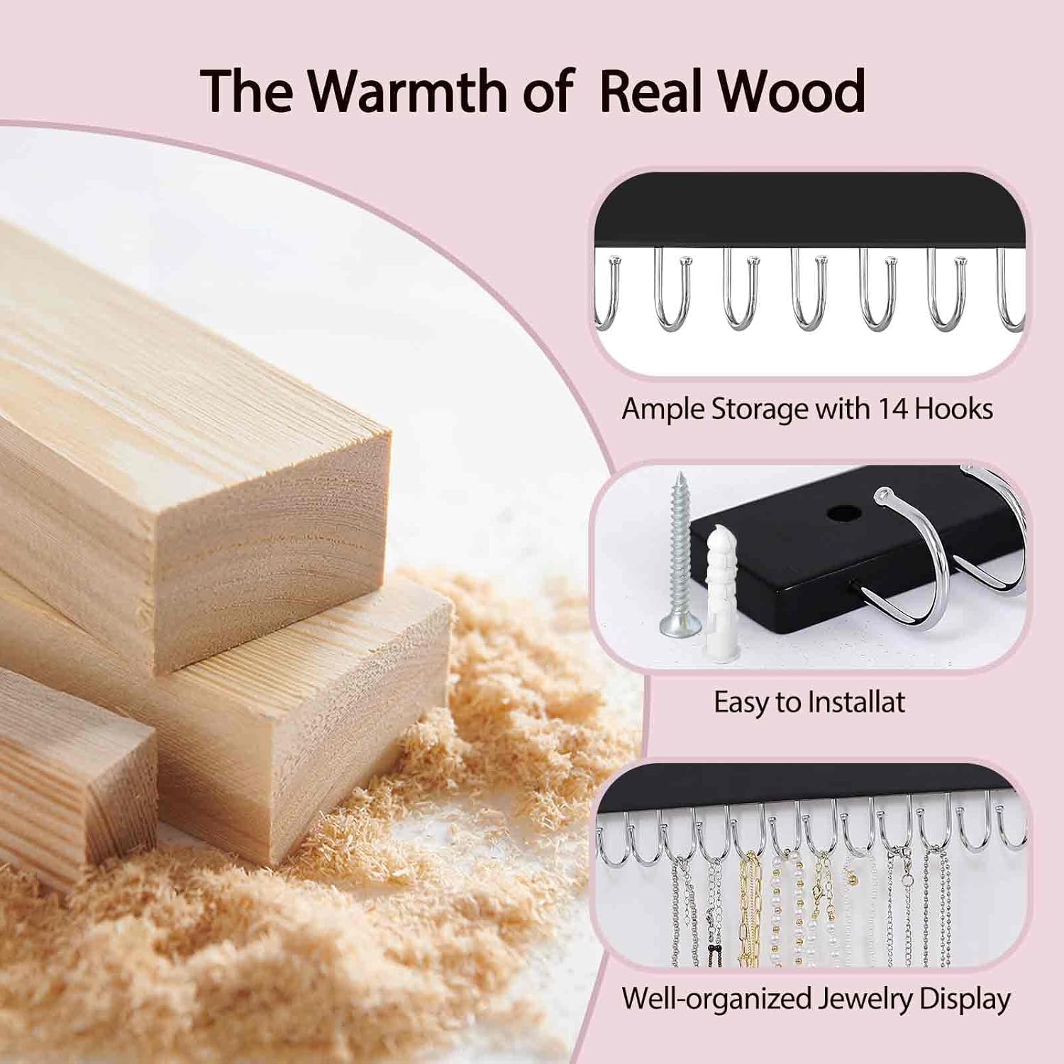 - The wood back broad adds an elegant touch to your decor while keeping your necklaces, bracelets, and earrings within reach