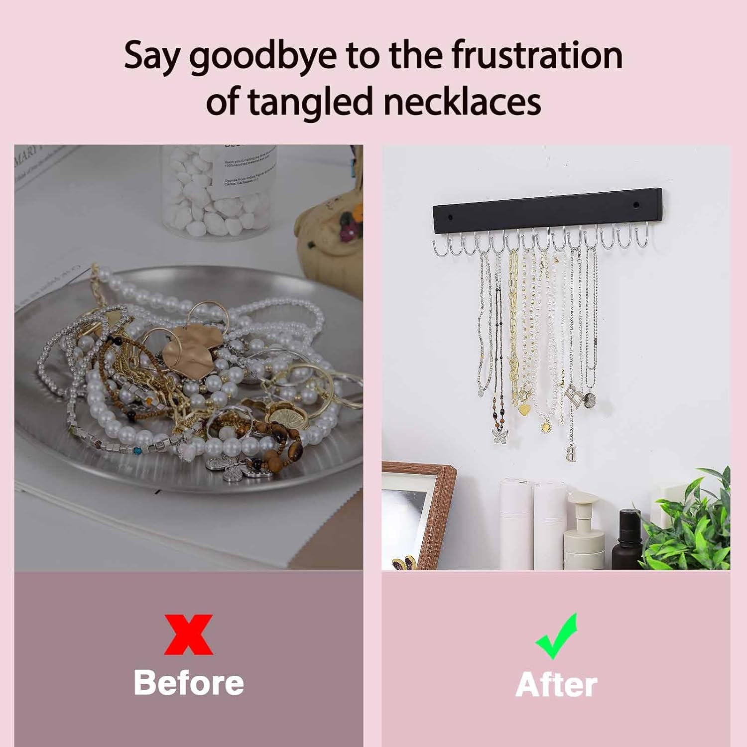 - With its easy wall-mount design, this necklace holder wall organizes your jewelry while freeing up table space