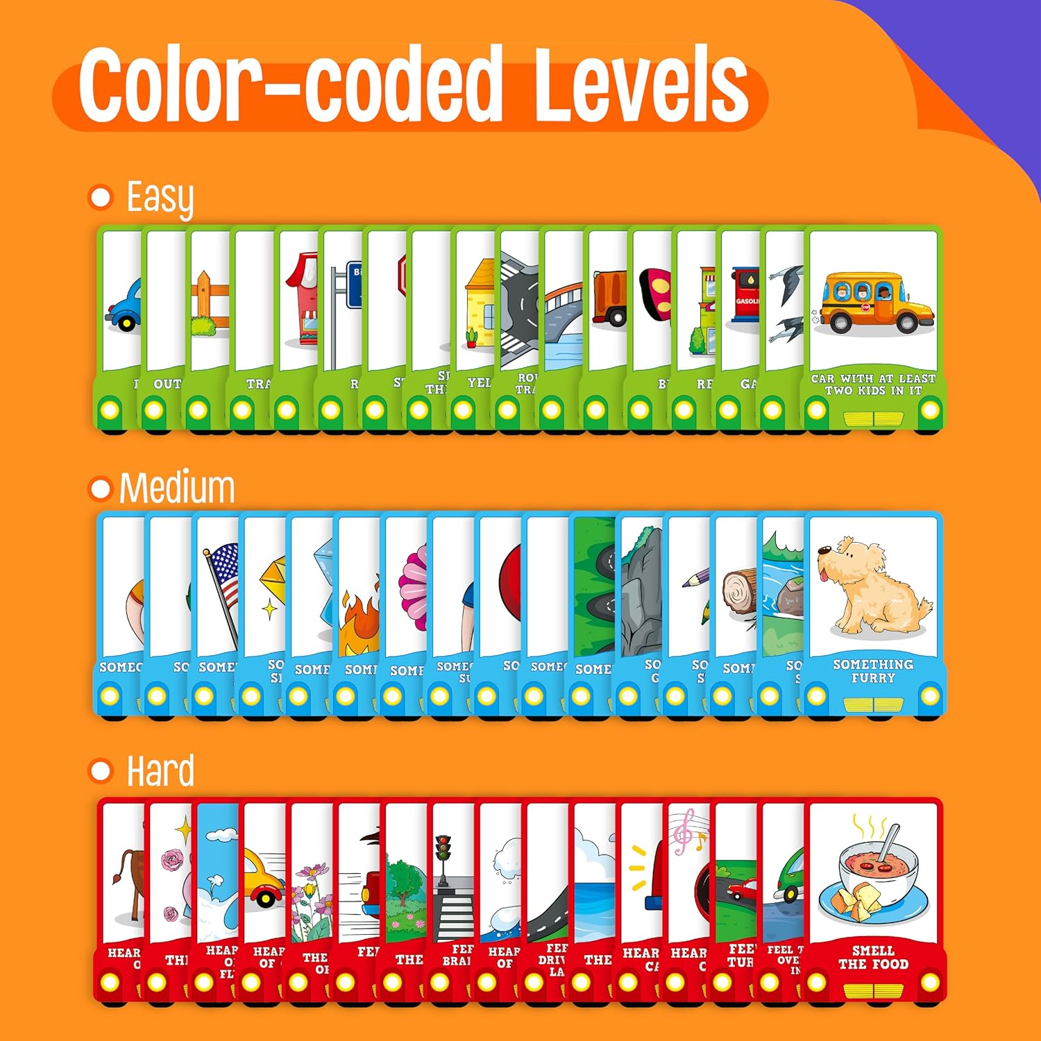 - Durable and Reusable: The cards are made from sturdy, durable materials, designed to withstand frequent use. The reusable cards ensure that the game can be played on multiple trips, offering ongoing enjoyment and a lasting value for families looking for ways to entertain their children on the road.