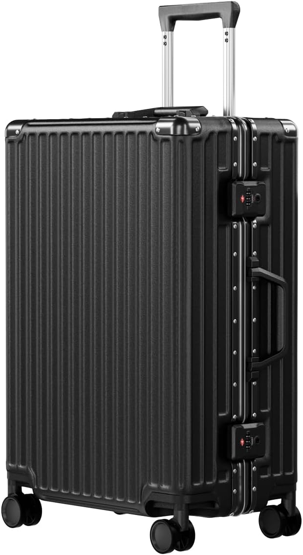 AnyZip Luggage PC+ABS Aluminum Frame Zipperless Checked Luggage Hard Shell Suitcase with TSA Lock Double Spinner Wheels 24 Inch Black