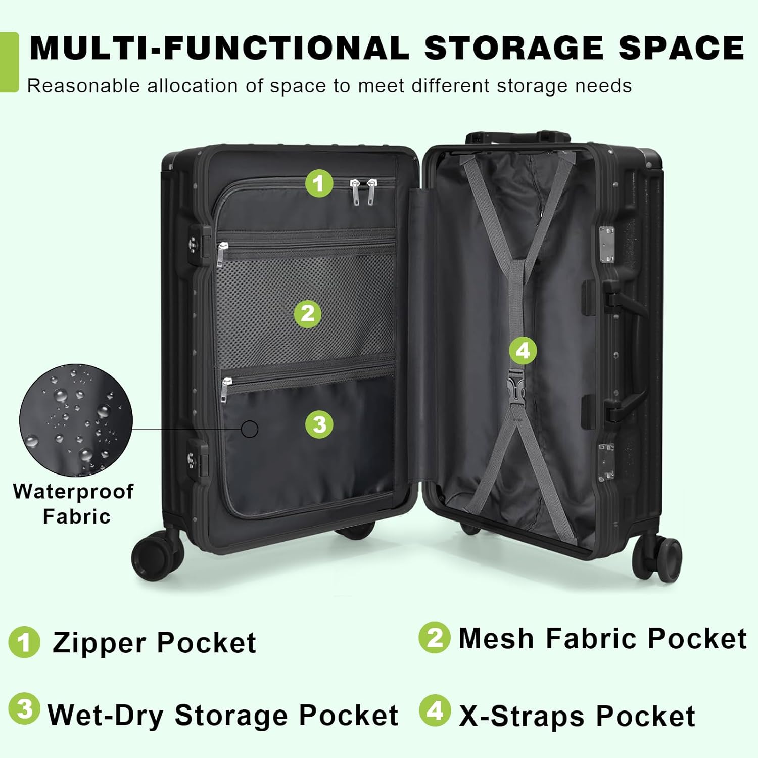 - Multi-pocket Design: The suitcase contains multiple pockets to meet storage needs, making it convenient for you to organise and sort belongings. Besides, the dark waterproof pocket design achieves wet and dry separation while better protecting your privacy.