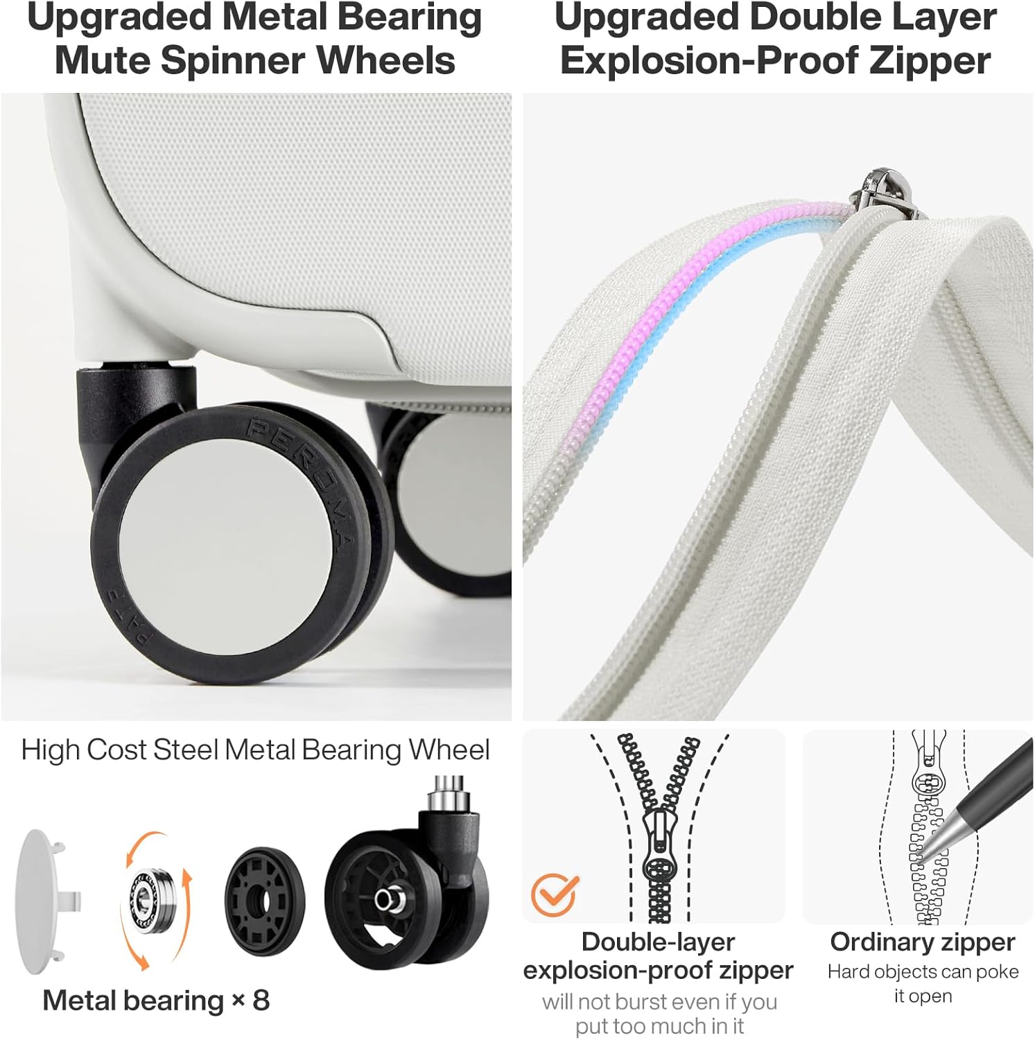 - 【Fine Grid Is Upgrade Version】Upgrade 1: Mute spinner wheels of the suitcases are upgraded to METAL Bearing mute Spinner wheels, which is more solid, durable and labor saving.