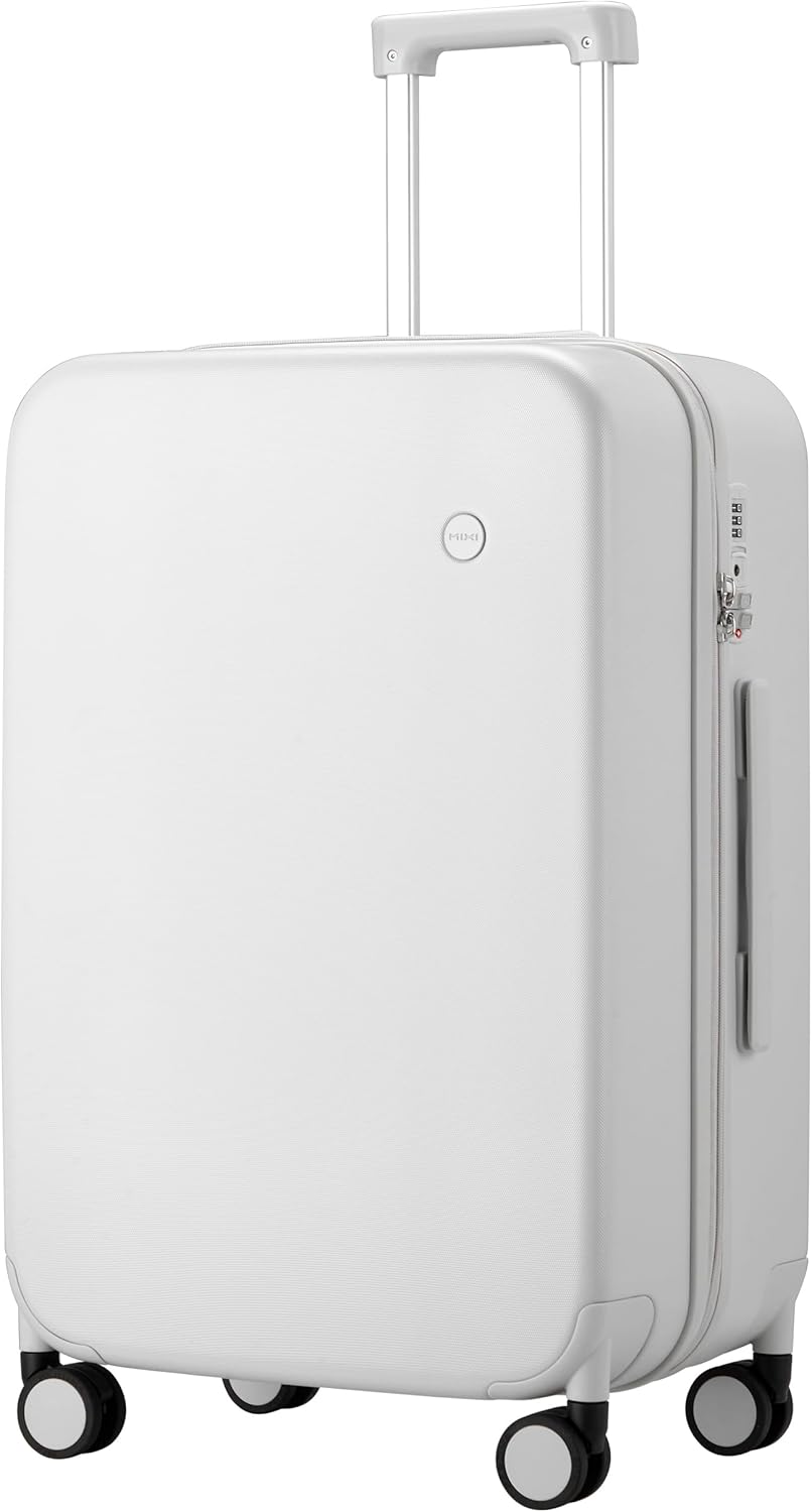 mixi Upgrade Luggage Suitcases with Spinner Wheels, Hardside Rolling Suitcase PC with TSA Lock Travel Case 24in Checked in, Fine Grid Smoke White