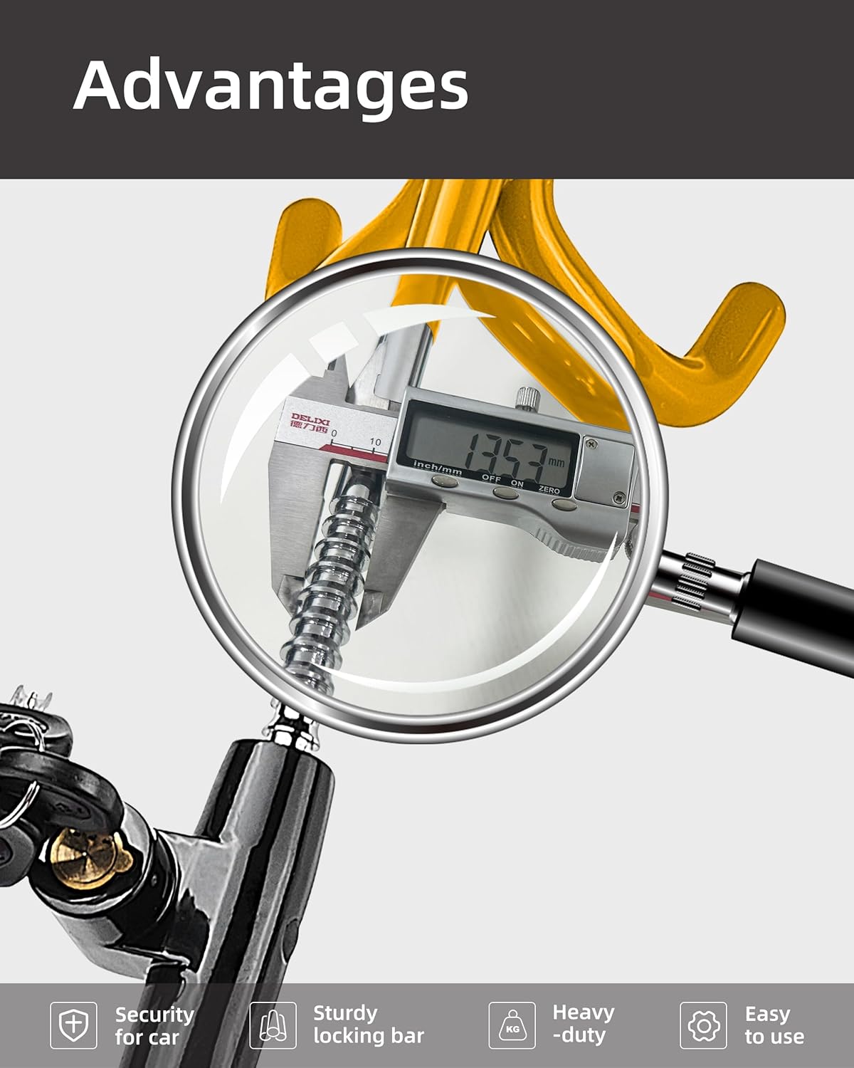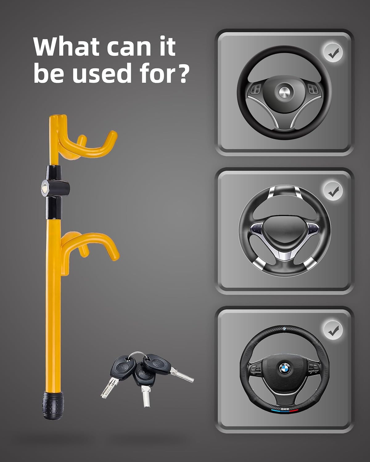 - Adaptable & Impenetrable: Steering wheel lock is adjustable and fits for any car which inner diameter of steering wheel is 6.5-16.7 inches. Universal fit for cars, trucks, vans, and SUV