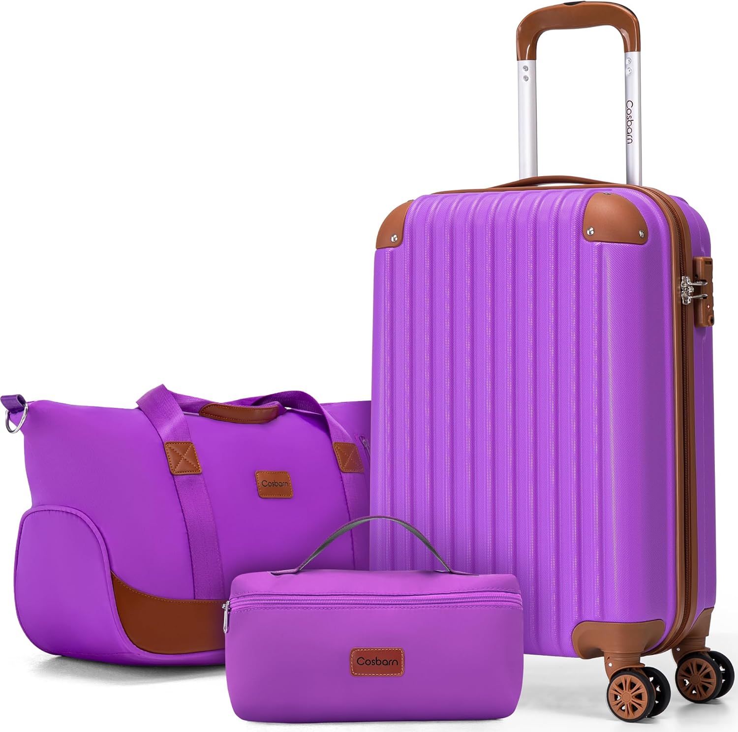 Carry On Luggage Sets 3 Piece, 20 Inch Luggage 22x14x9 Airline Approved with Wheels and TSA Lock, ABS Lightweight Hardshell Travel Suitcase Set with Duffel Bag Travel Bag for Men Women