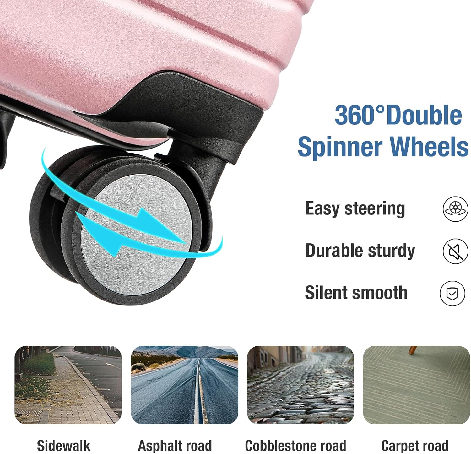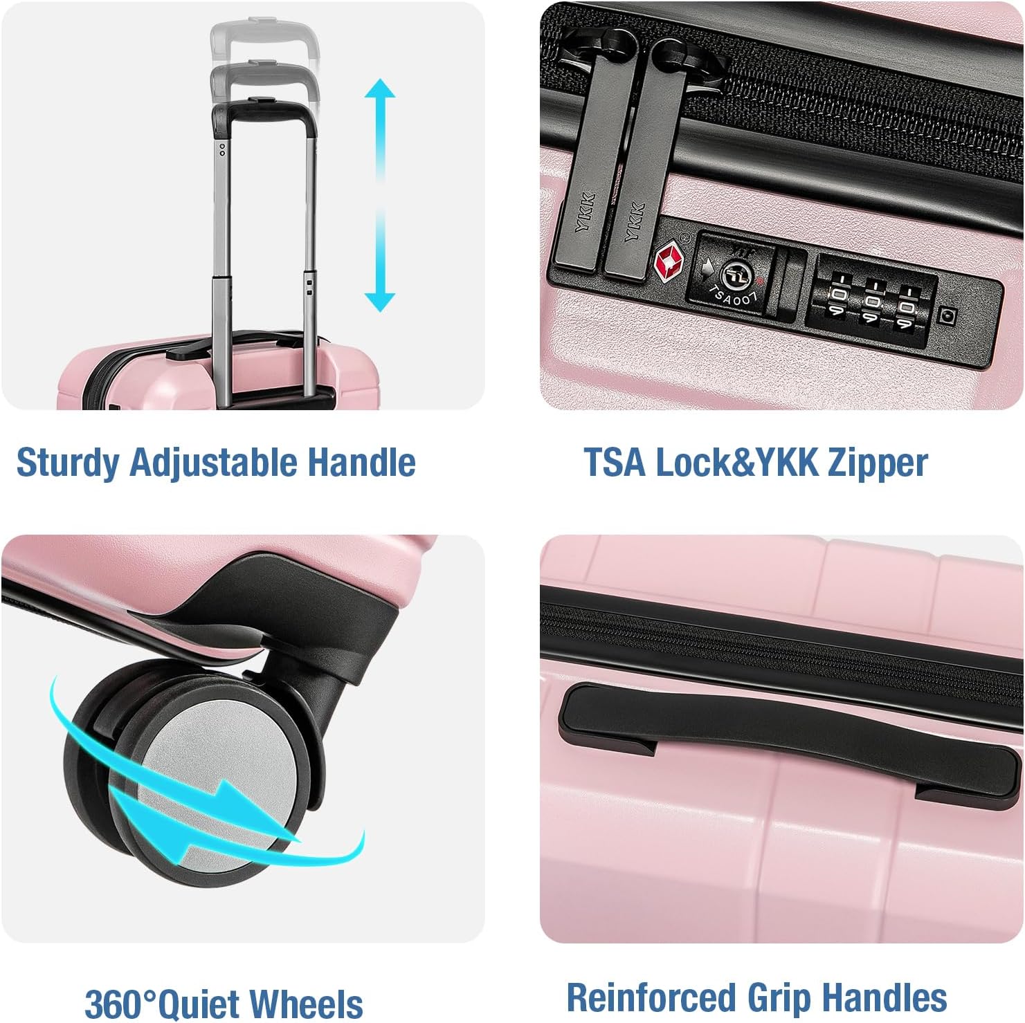 - SPINNER WHEELS LUGGAGE:KYME carry on luggage equiped with double 360°swivel wheels,rolling smoothly over a variety of surfaces.these 20 in small rolling suitcase equiped with a 3-step handle adjustment for different heights.Combination TSA lock and YKK zipper keeps your peace of mind