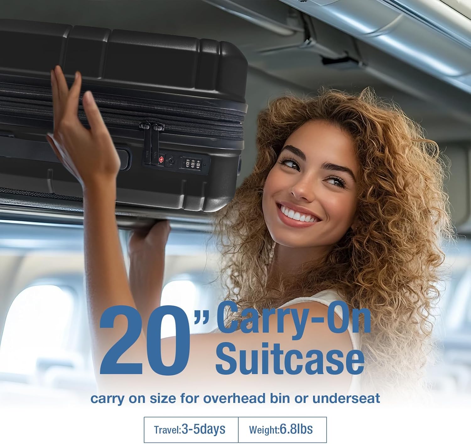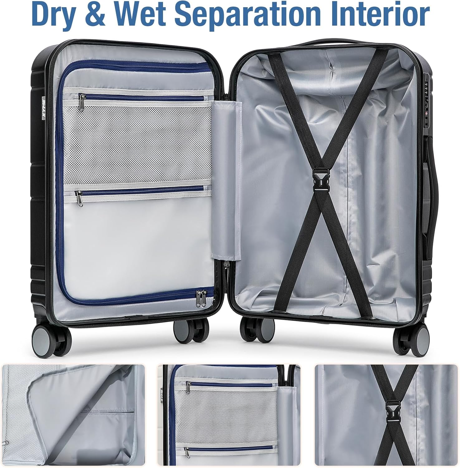 KYME Carry On Luggage 22x14x9 Airline Approved with TSA Lock Hard Shell Carry On Suitcase Lightweight Suitcases with Wheels Small Luggage for Men Women,Carry-On 20 Inch,Black