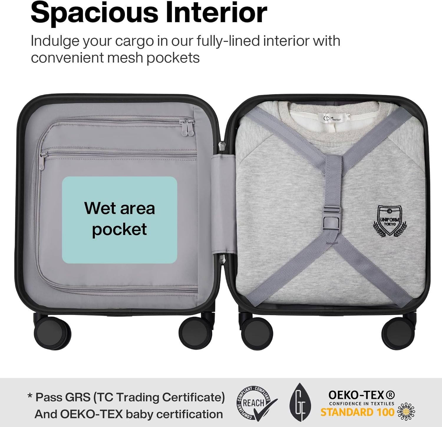 mixi Upgrade Carry on Luggage 14 Inch Underseat Personal Item Suitcases with Spinner Wheels, Hardside Rolling Suitcase PC with TSA Lock Lightweight Travel Case, Fine Grid Black