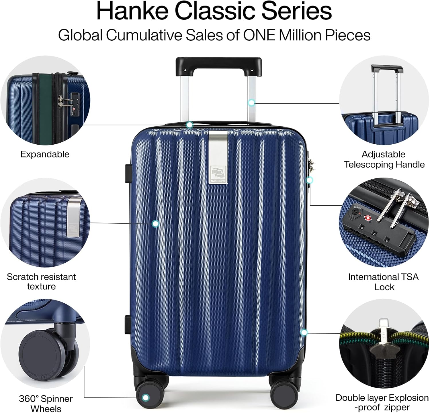 Hanke 24 Inch Expandable Checked Luggage Lightweight PC Hard Case Luggage Suitcases with Wheels Travel Luggage Rolling Large Suitcase Travel Luggage Bag for Go to University.(Dark Blue)
