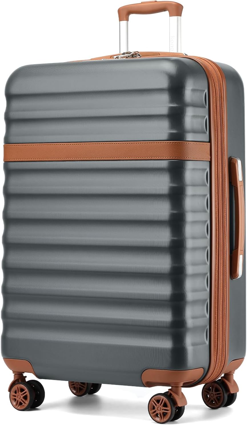 Kono Expandable 28 Inch Large Checked Luggage: ABS+PC Hardside Trolley Travel Case - Hard Shell Suitcase with TSA Lock,Grey Brown