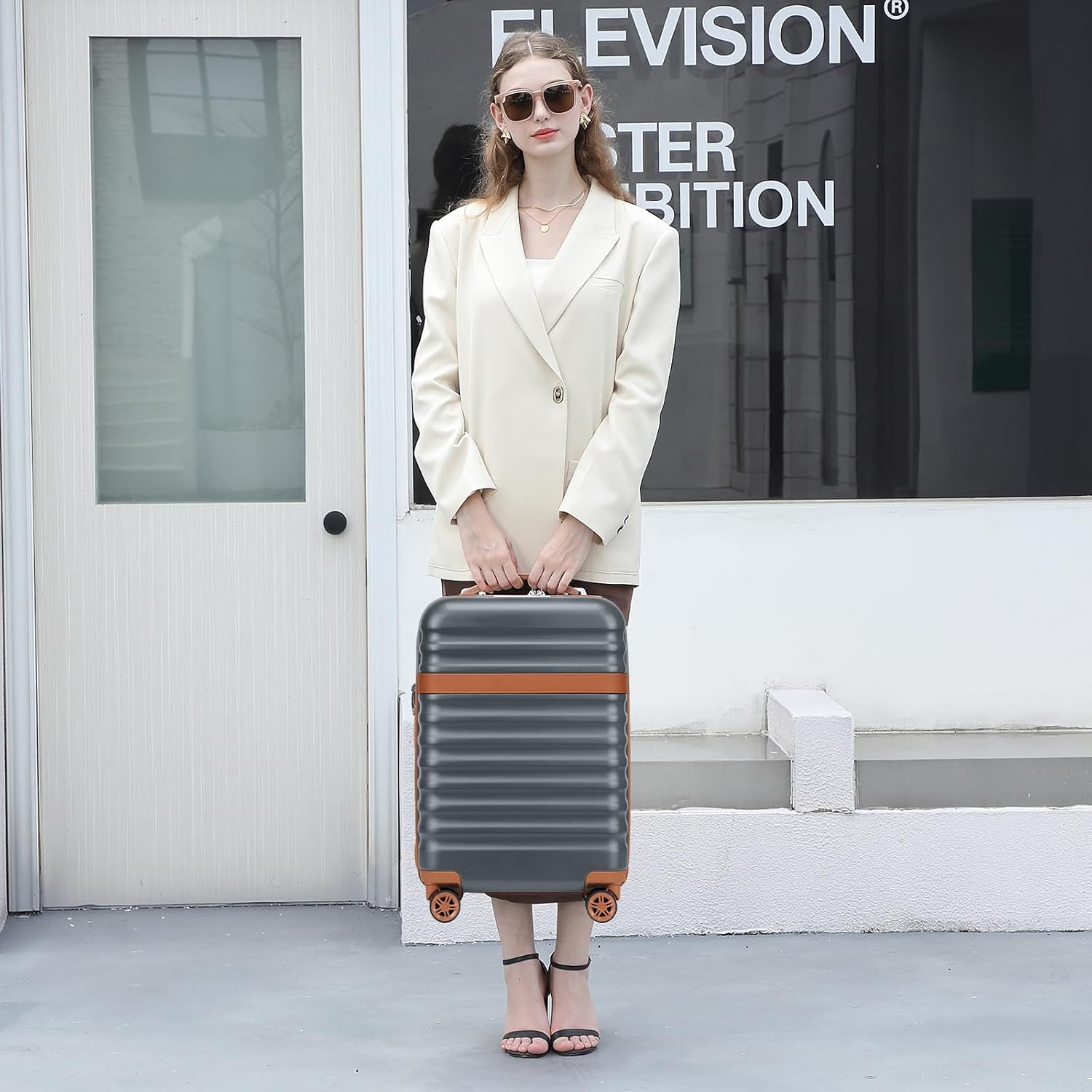 Kono Airline Approved Carry On Luggage 22x14x9 inches, with TSA Lock, 20 Inch Expandable Lightweight Hardshell Suitcase (Grey brown, Suitable for 1-3 Days of Travel)