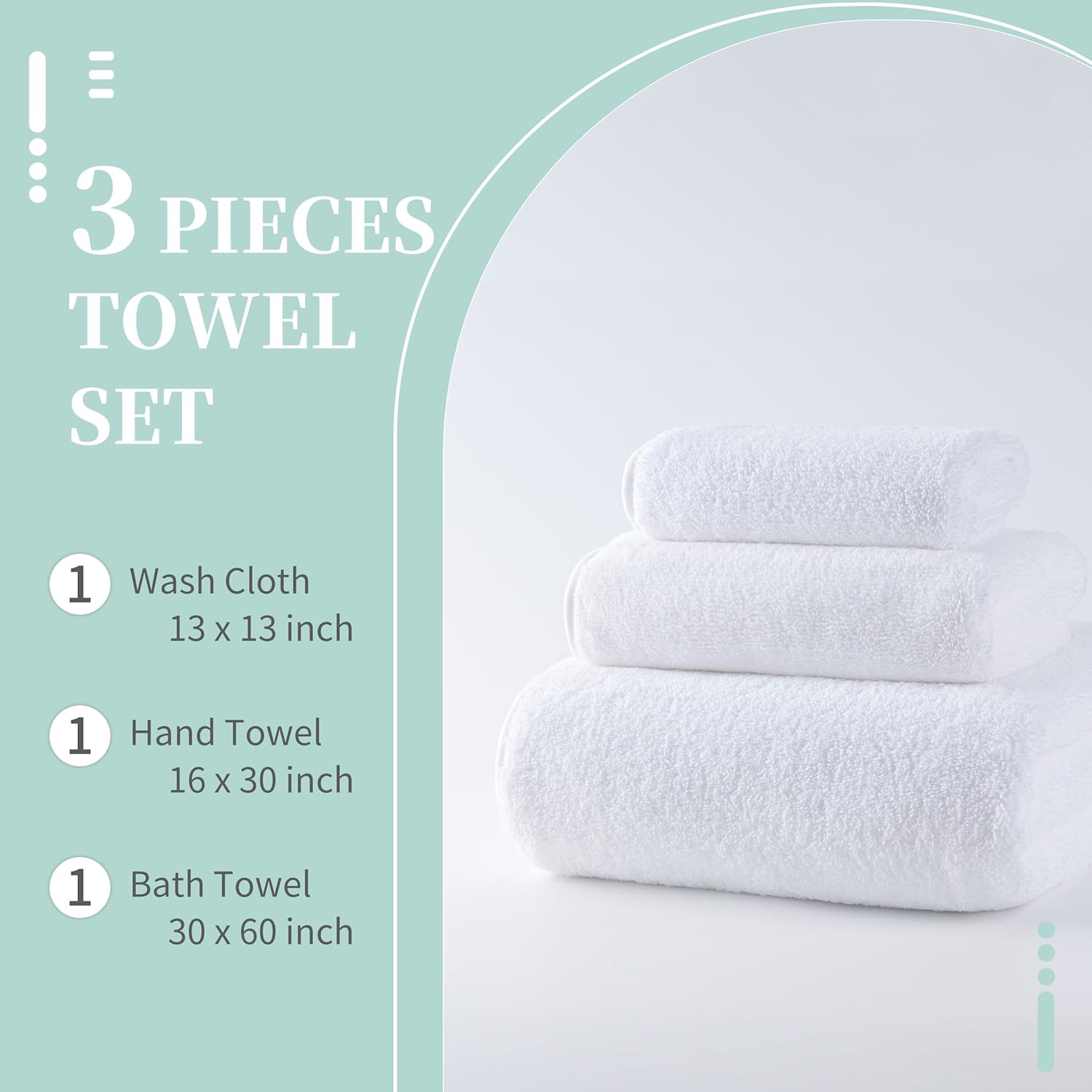- Oversized 3-Piece Set: This set includes 1 bath towel measuring 30 x 60 inches (76.2 x 152.4 cm), 1 hand towel measuring 16 x 30 inches (40.6 x 76.2 cm), and 1 face towel measuring 13 x 13 inches (33 x 33 cm) for complete bathing needs.
