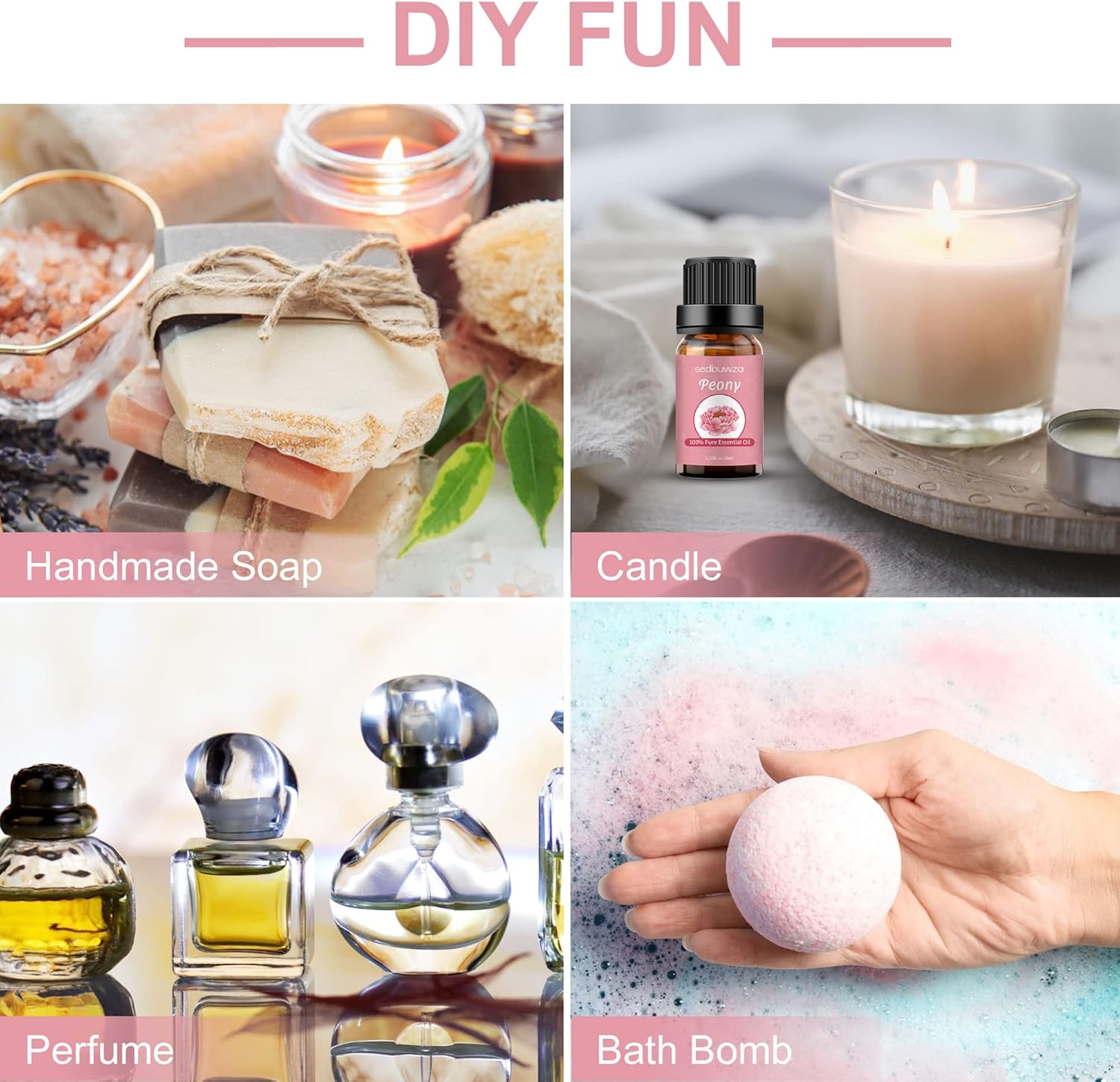 Sedbuwza Rose Peony Essential Oil Set, Rose Fragrance Oil Peony Scent Oil Set for Diffuser, Aromatherapy, Massage, Soap, Candle Making 2 x 10 ml