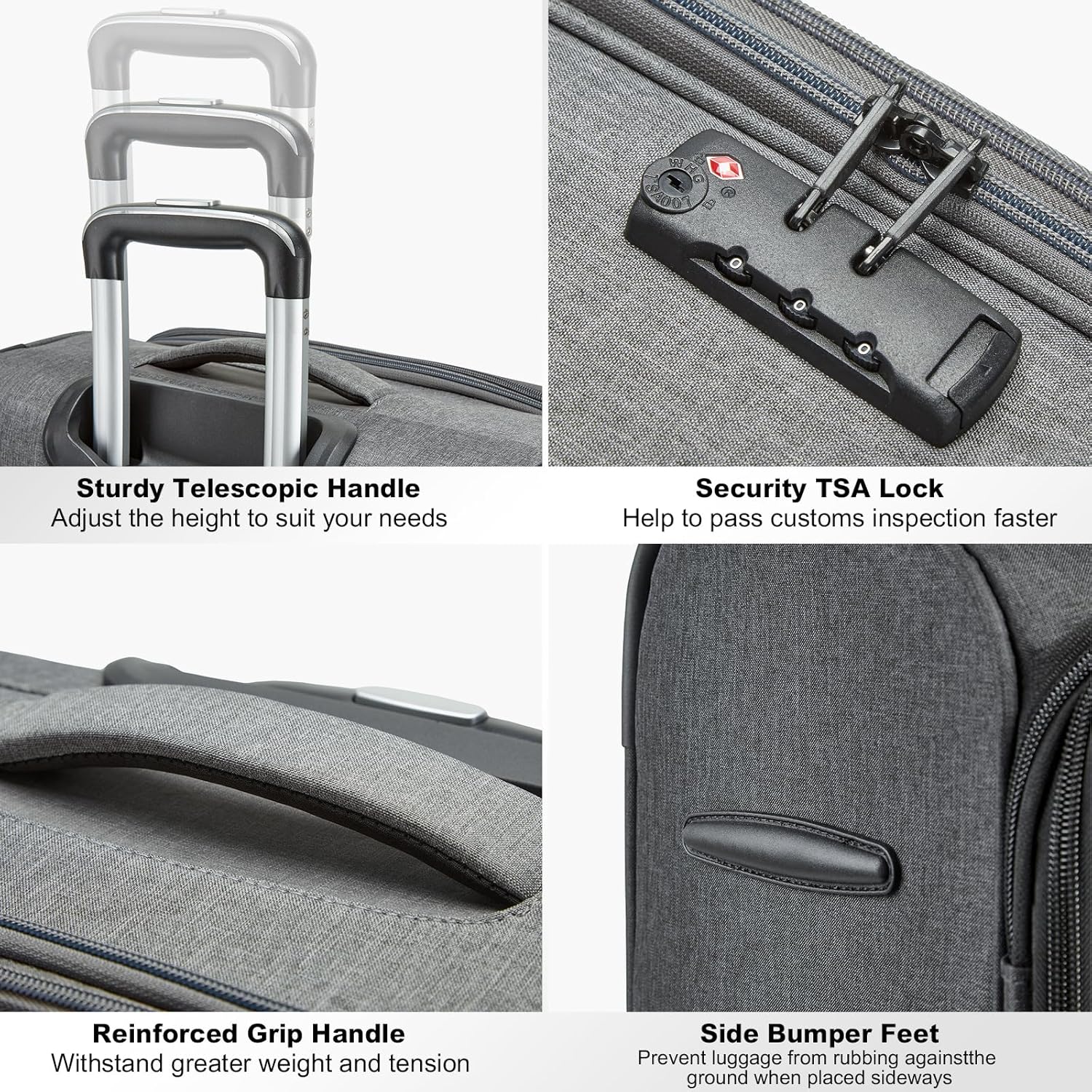 - HIGH QUALITY&ALUMINIUM COPING HANDLE: The soft shells are made of premium 600d polyester fiber material that is impact and scratch resistant, waterproof, and super lightweight.The aluminum handle is lightweight and sturdy.Top and side reinforced grip handles come in handy when carrying heavy items, making it effortless to lift and transport your luggage in various situations.