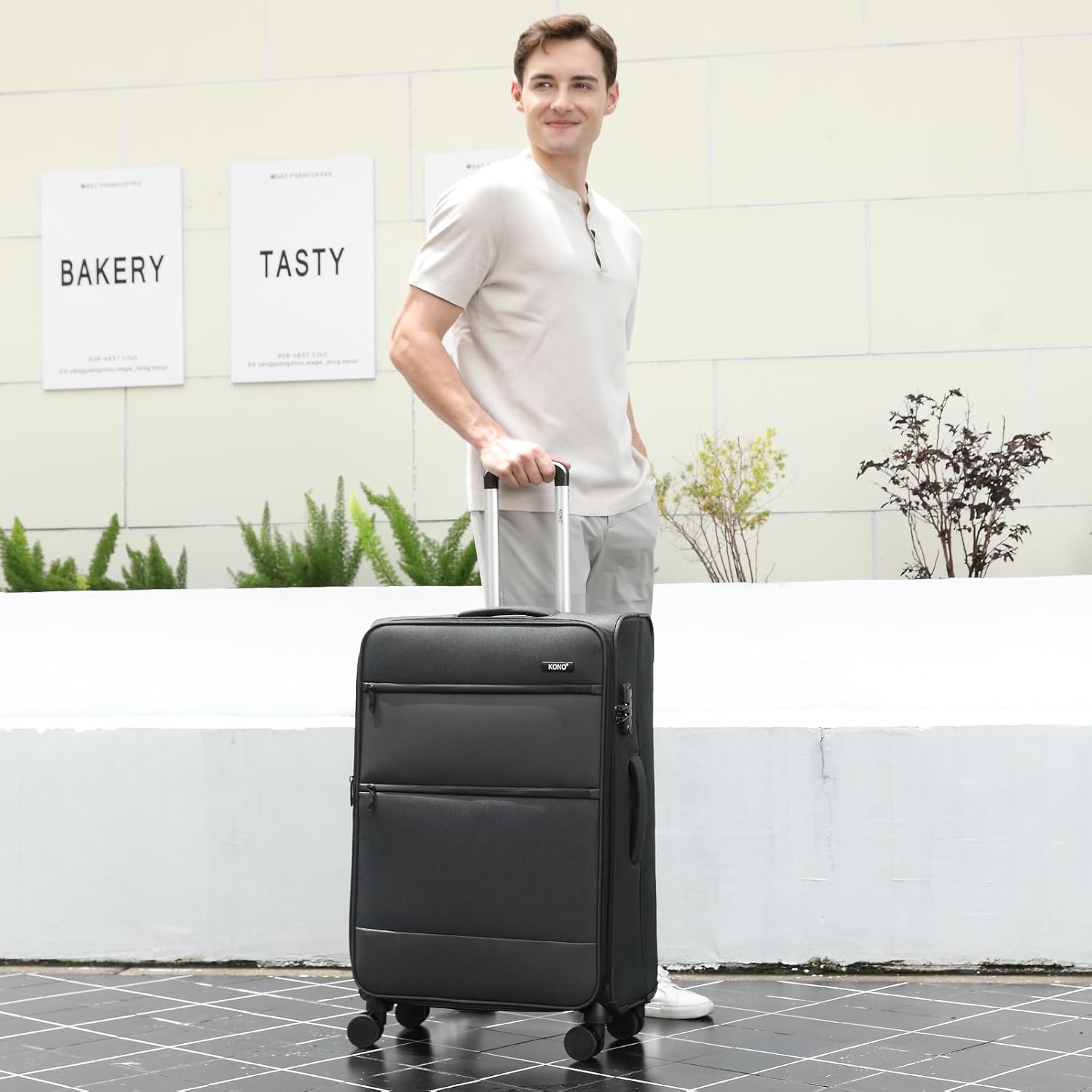 Kono 28 Inch Softside Expandable Checked Luggage with 8 Spinner Wheels TSA Lock Softshell Lightweight Business Travel Suitcase for Men and Women, Black