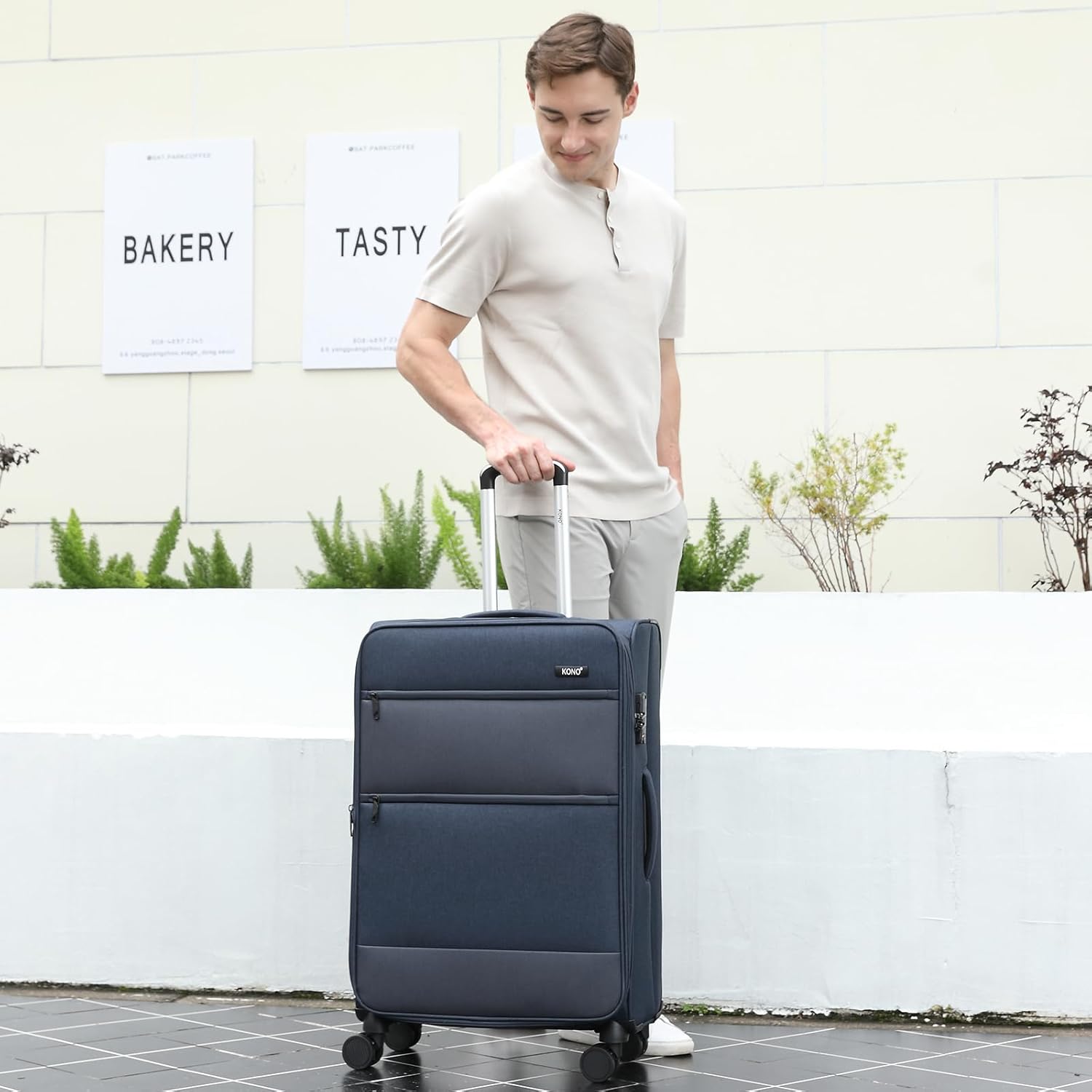 Kono 28 Inch Softside Expandable Checked Luggage with 8 Spinner Wheels TSA Lock Softshell Lightweight Business Travel Suitcase for Men and Women, Navy Blue