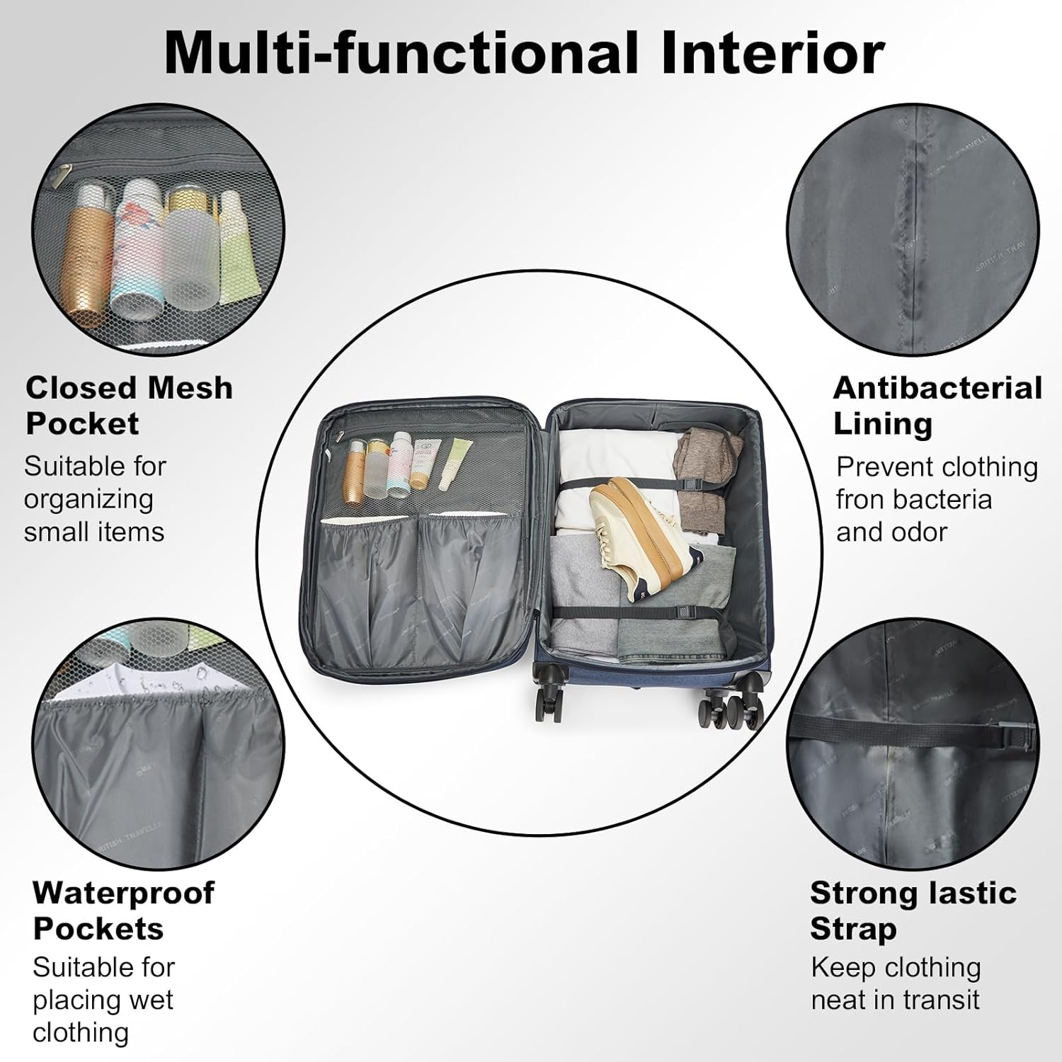 - HIGH QUALITY&ALUMINIUM COPING HANDLE: The soft shells are made of premium 600d polyester fiber material that is impact and scratch resistant, waterproof, and super lightweight.The aluminum handle is lightweight and sturdy.Top and side reinforced grip handles come in handy when carrying heavy items, making it effortless to lift and transport your luggage in various situations.