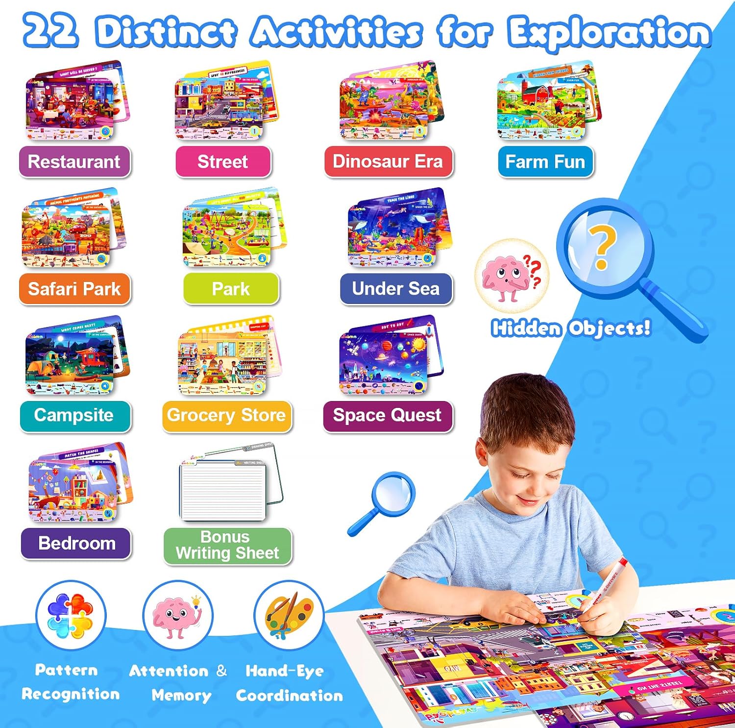 - โ ใ๐๐จ๐ซ๐ ๐ญ๐ก๐๐ง ๐๐ ๐๐๐ฉ๐๐๐ญ๐๐๐ฅ๐ ๐๐ก๐๐ฆ๐๐ญ๐ข๐ ๐๐๐ฏ๐๐ง๐ญ๐ฎ๐ซ๐๐ฌใThis product features 11 double-sided cardboards with 22 cartoon themes like restaurants, farm, and ocean. Each cardboard offers a detailed search and find scene on one side and interactive activities on the other to train children's ๐ ๐๐ ๐ข๐ฅ๐ฌ ๐๐ก๐ ๐๐ข๐๐ก๐๐ง๐๐ข๐ก, ๐๐๐ก๐-๐๐ฌ๐ ๐๐ข๐ข๐ฅ๐๐๐ก๐๐ง๐๐ข๐ก, and ๐ฃ๐ฅ๐ข๐๐๐๐ -๐ฆ๐ข๐๐ฉ๐๐ก๐ ๐ฆ๐๐๐๐๐ฆ. It also includes a double-sided write & draw cardboard for freestyle painting and vocabulary practice.