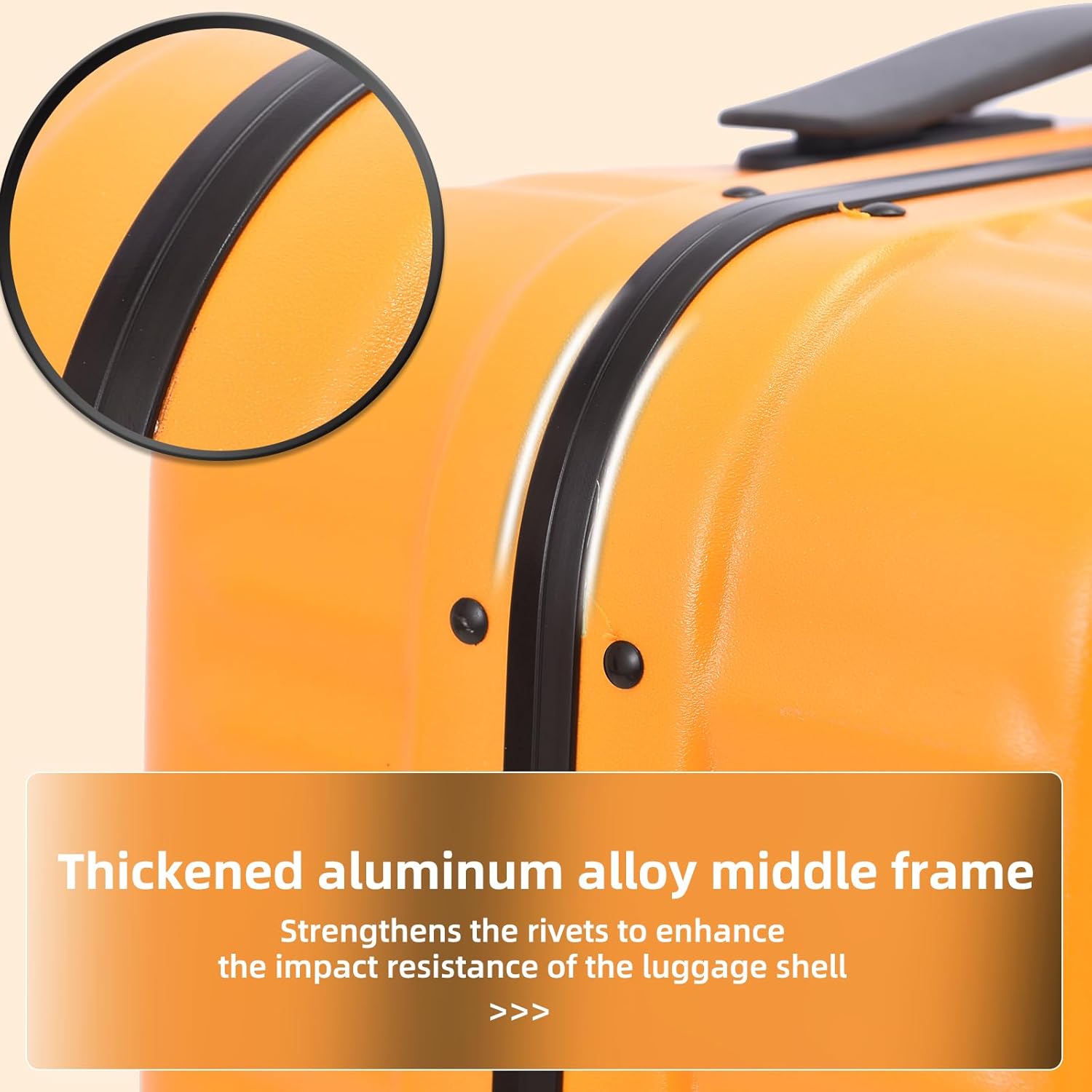 - ABS+PC Hardshell & Aluminum Frame: Made of brand new ABS+PC material, the suitcase is more sturdier and lightweight in daily use. The middle aluminum frame design offers more load bear than other normal luggage. You can even sit on the luggage when you are tired during the trips. If you're ready to take your suitcase game to the next level, it might be time to consider our aluminum suitcase.