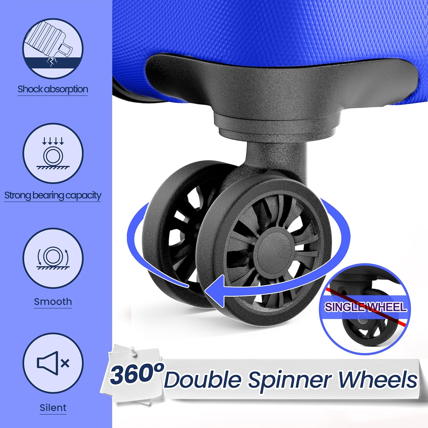 - Dual Spinner Wheel Design: The 4 360° silent dual spinner wheels easily change the direction of move without much effort, moving smoothly through crowded streets, train stations or airports, enhancing your travel experience.