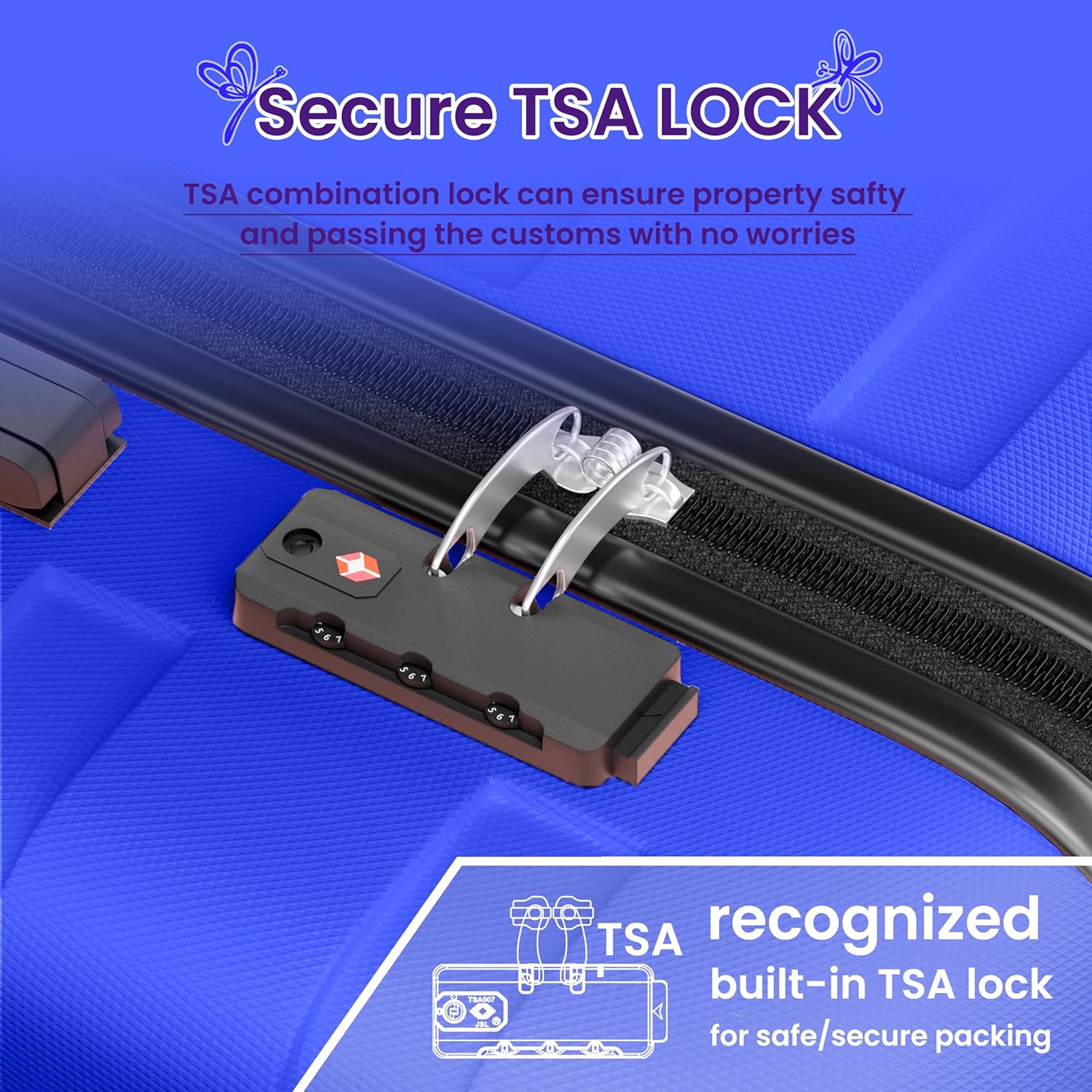 - Secure TSA Lock: The TSA lock can be easily unlocked by simply pressing the button, making it convenient for customs to quickly check your suitcase. Explosion-proof zip and TSA lock are used together, sturdy and durable, greatly protecting your privacy.