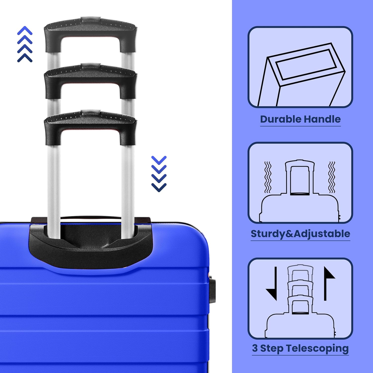 AnyZip Luggage Sets 3 Piece Hardshell Suitcase Set PC ABS Lightweight Travel Suitcases with 4 Double Spinner Wheels TSA Lock 20 24 28 Inch Blue