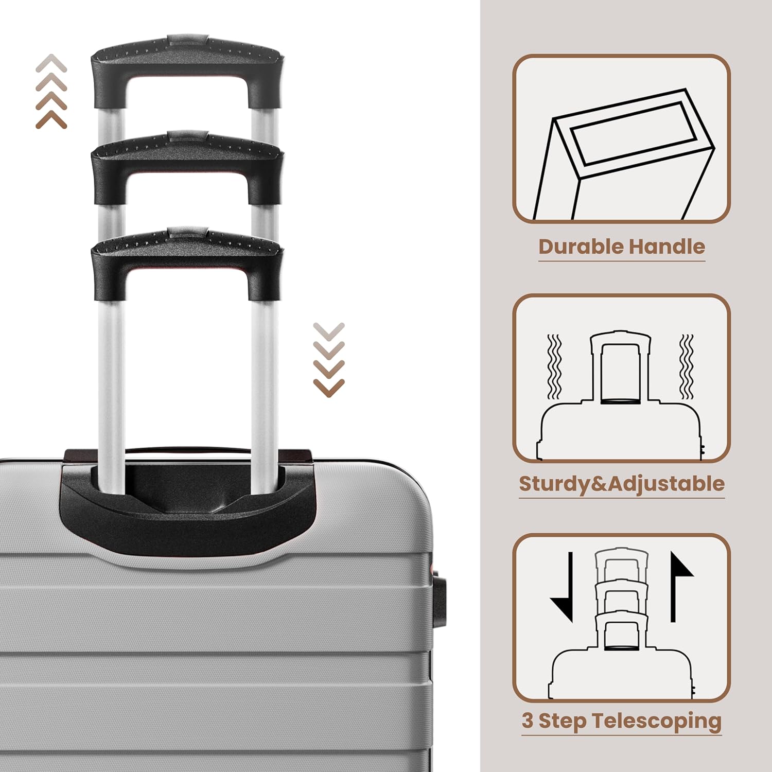 AnyZip Luggage Sets 3 Piece Hardshell Suitcase Set PC ABS Lightweight Travel Suitcases with 4 Double Spinner Wheels TSA Lock 20 24 28 Inch Silver