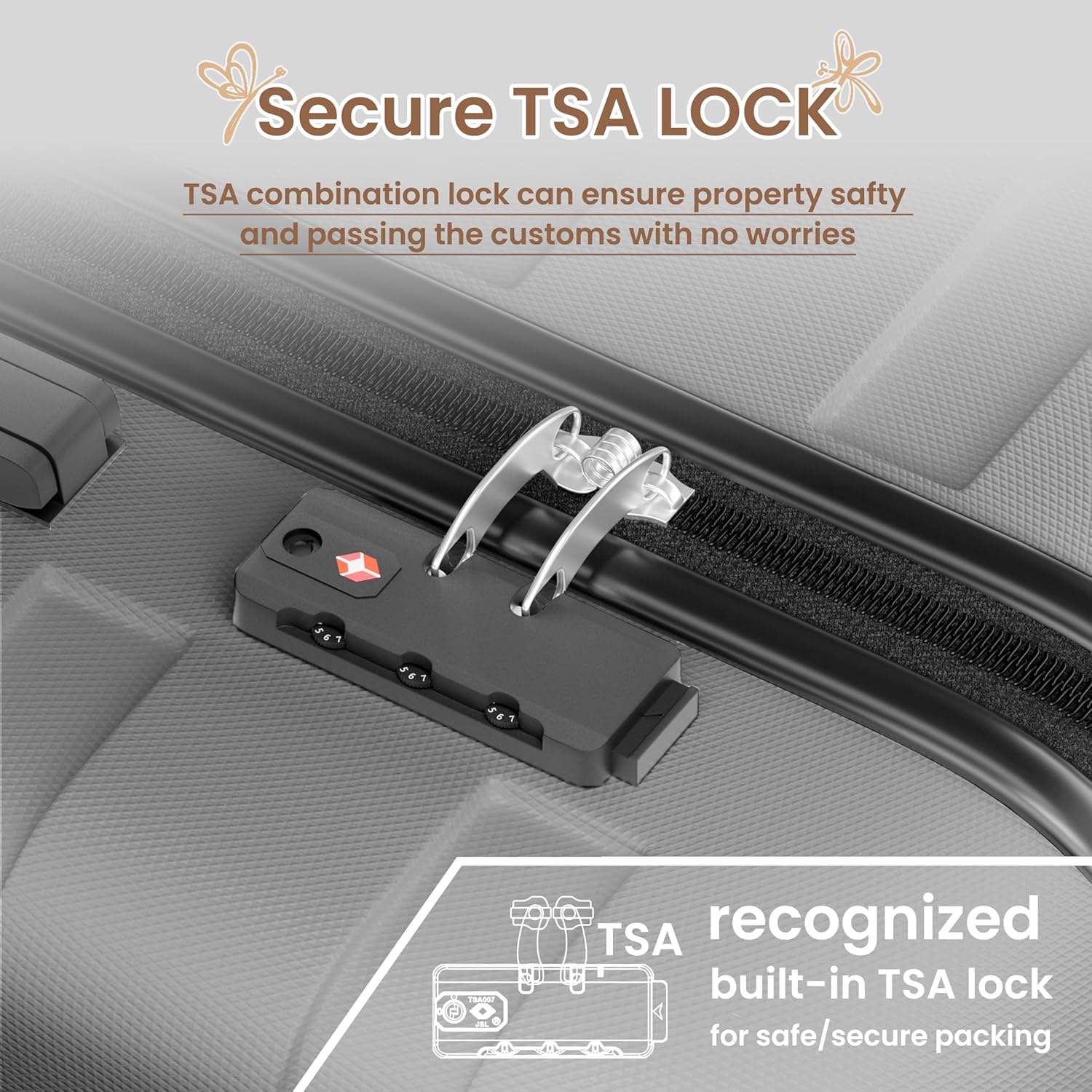 - Secure TSA Lock: The TSA lock can be easily unlocked by simply pressing the button, making it convenient for customs to quickly check your suitcase. Explosion-proof zip and TSA lock are used together, sturdy and durable, greatly protecting your privacy.