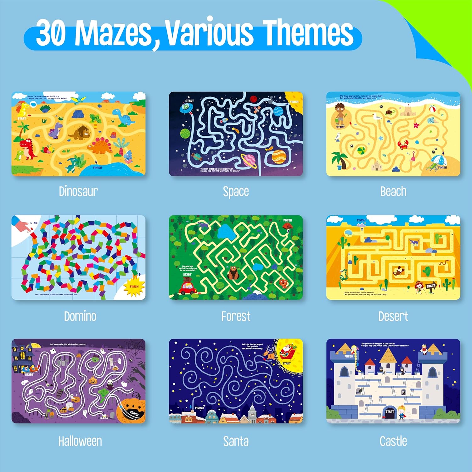 - 30 Reusable Mazes: Our dry erase activity book features 30 intricate mazes, each offering a unique challenge and hours of brain-tickling fun. Difference scenes including ocean, beach, universe, desert, etc. get these diverting mazes once for all in 1 pad.