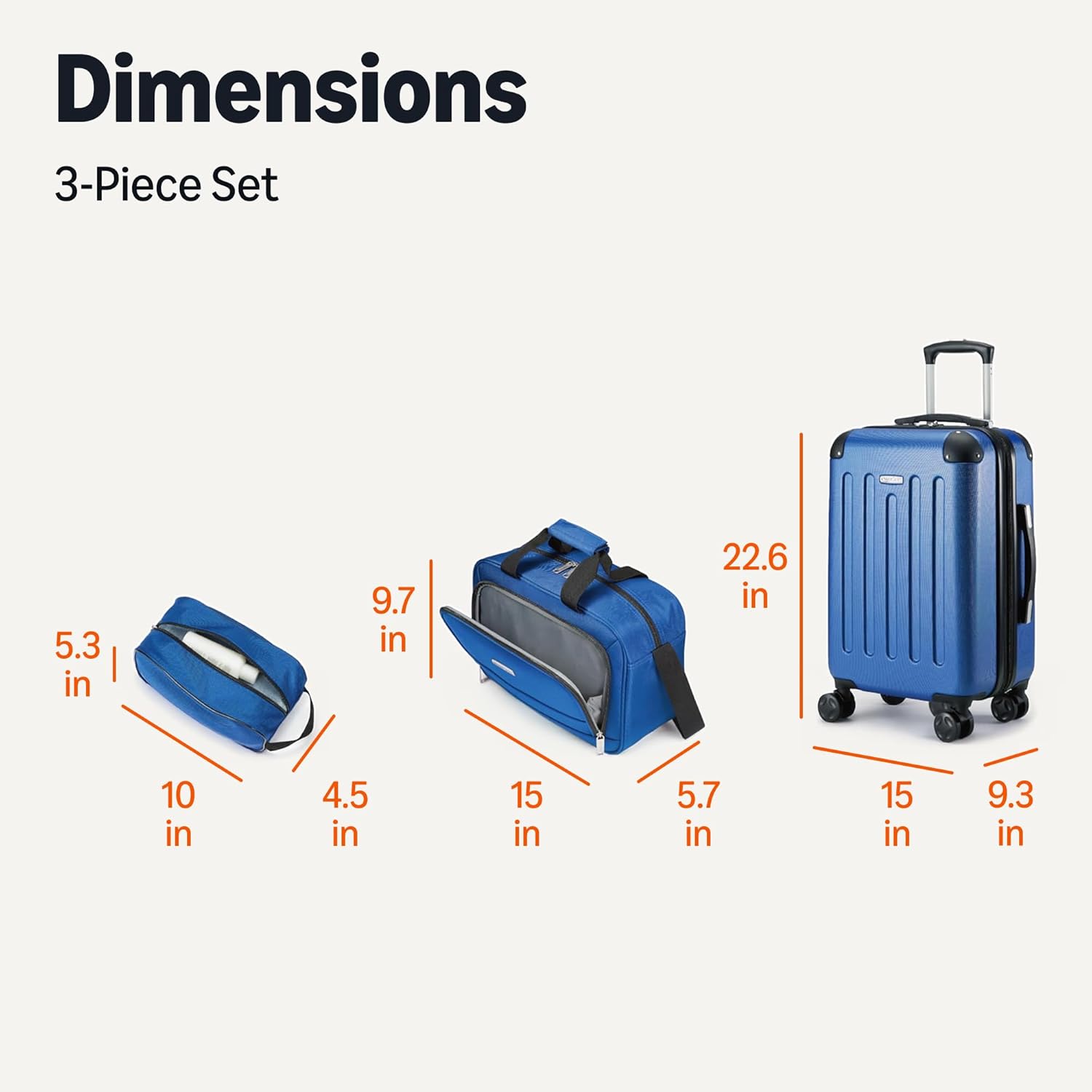 Amazon Basics 3-Piece Luggage Set, Including One Carry-On Luggage (22" Expandable Hardside Suitcase With 8 Spinner Wheels), One 15-inch Tote Bag, and One 10-inch Compact Travel Bag, Navy Blue