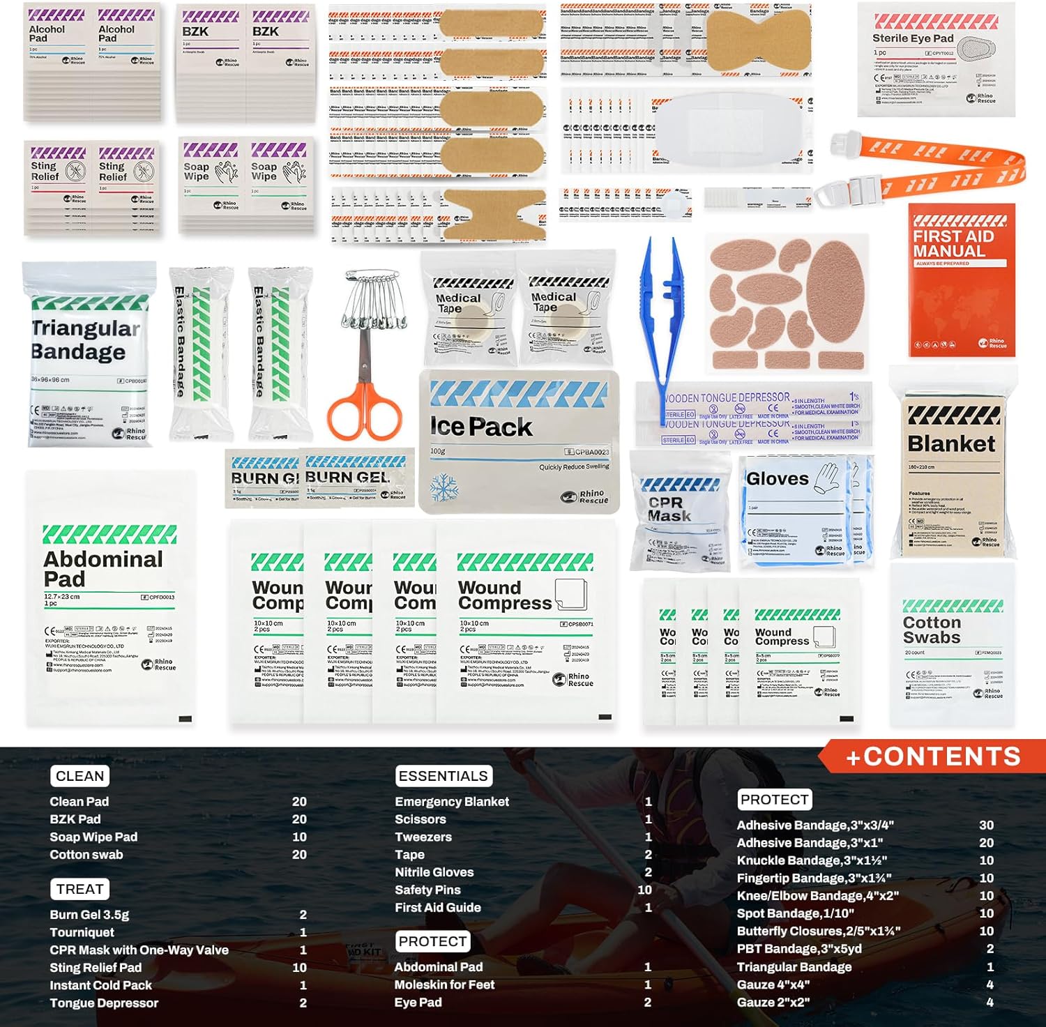 RHINO RESCUE 220 Pieces First Aid Kit Refill Bag, Emergency Extra Replacement Supplies, Includes Medical Bandages, Gauzes & Pads for Home, School & Car