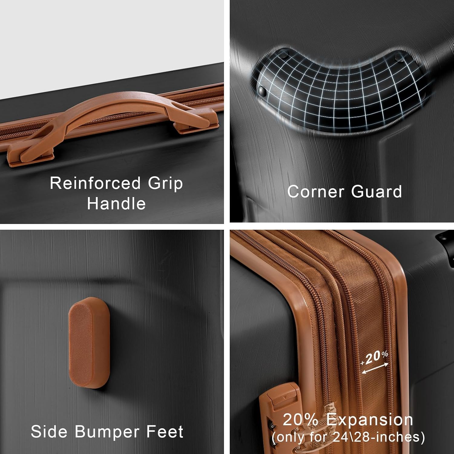 Merax Luggage Set 6 Piece Expandable Lightweight ABS Hardshell Suitcases with Wheels, Corner Guards (Black Brown, 6 piece set)