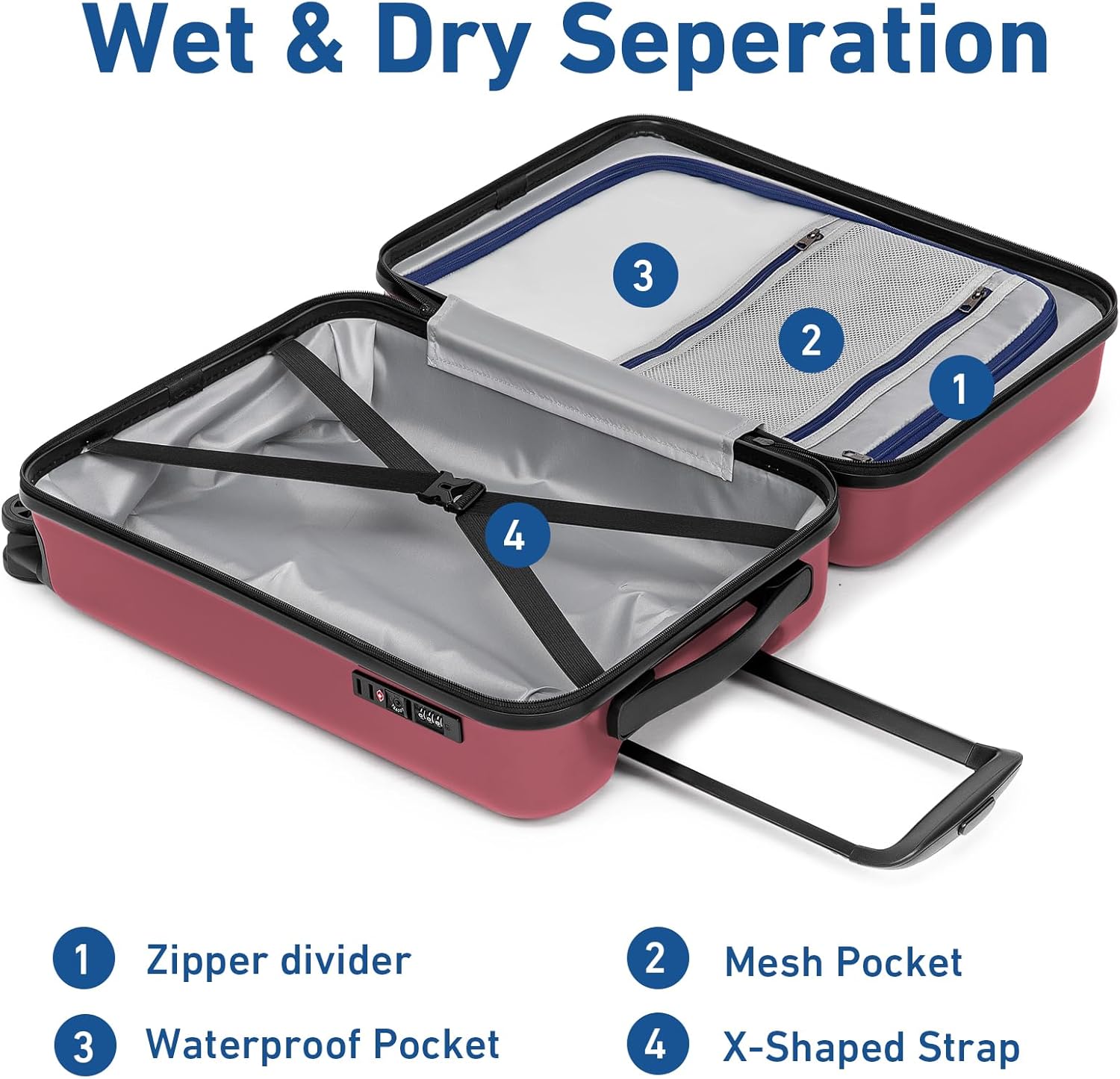 KYME Suitcase Hardshell With Double Spinner Wheels, PC+ABS TSA Lock Travel Luggage (Berry Red, 20" Carry On)