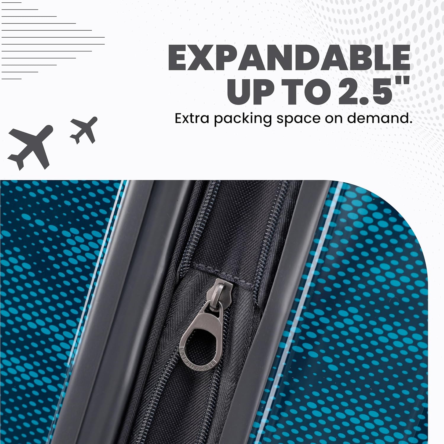 - Convenient Design: Two carry handles provide maximum convenience when lifting a packed case, and this suitcase also has an expandable design that allows a full 2.5” expansion for additional packing capacity