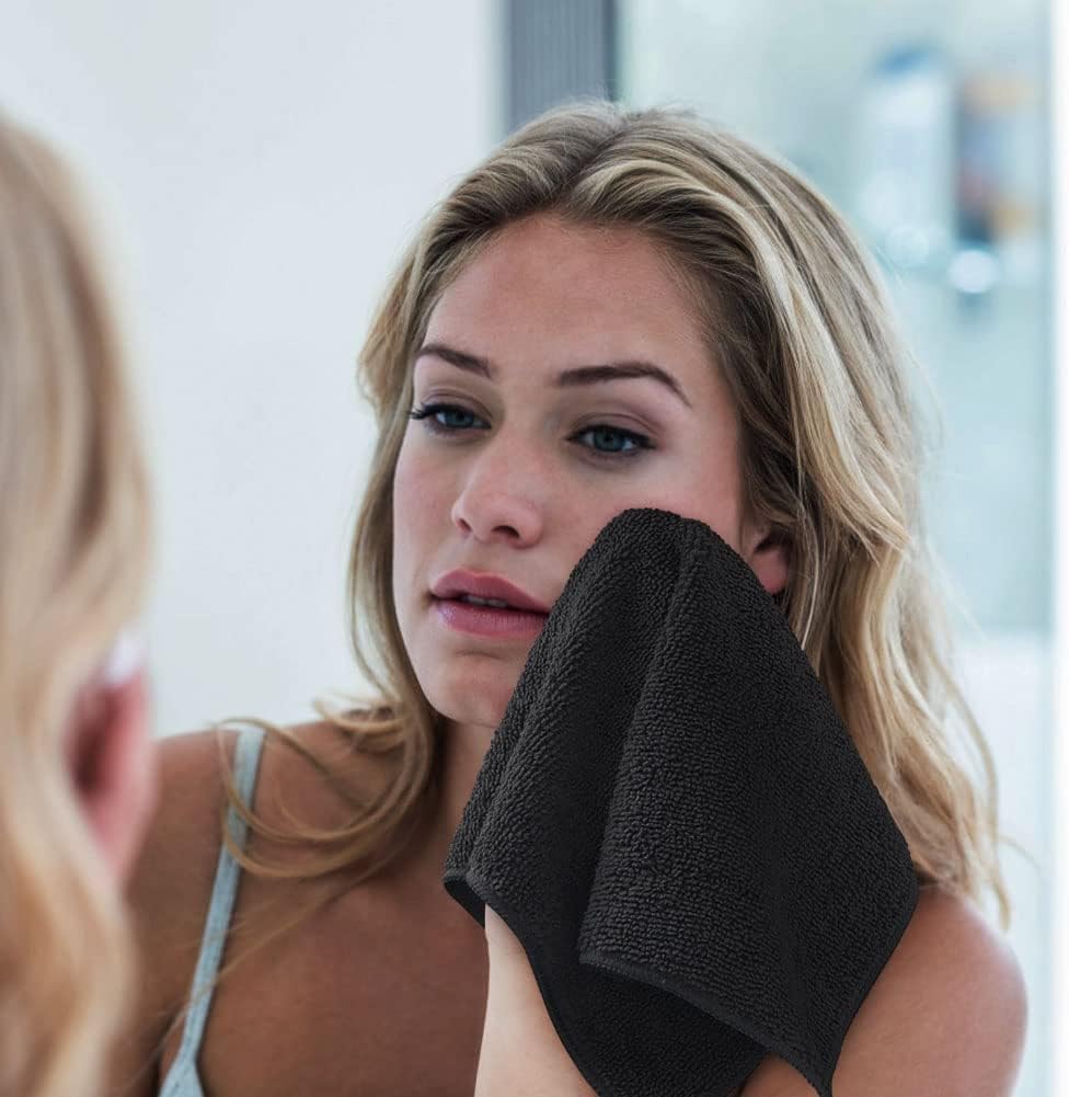 Orighty Microfiber Washcloths Bulk Towels Set 100 Pack, Highly Absorbent and Soft Feel Face Cloths, Multi-Purpose Wash Cloths & Hand Towels for Bathroom, Hotel, Spa, and Gym, 12x12 Inch, Black