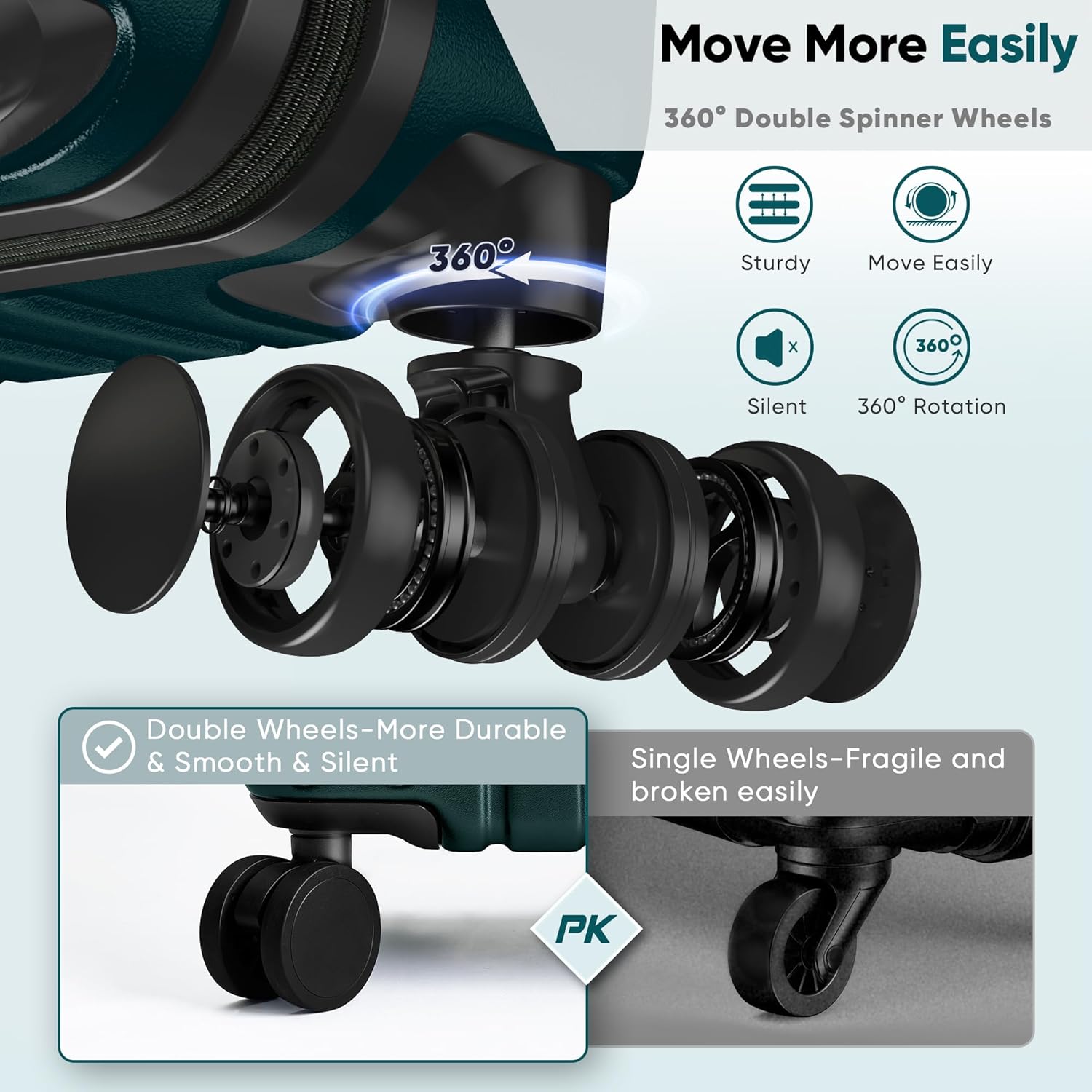 - Suitcase with Double Wheels: The luggage boasts 360°double whisper-quiet wheels that effortlessly roll with a graceful across all surfaces, ensuring a seamless journey devoid of disruptive noise. Wheels have undergone extensive professional testing (rolling test/shocking test/walking test/fatigue test) to ensure optimal performance under various conditions.