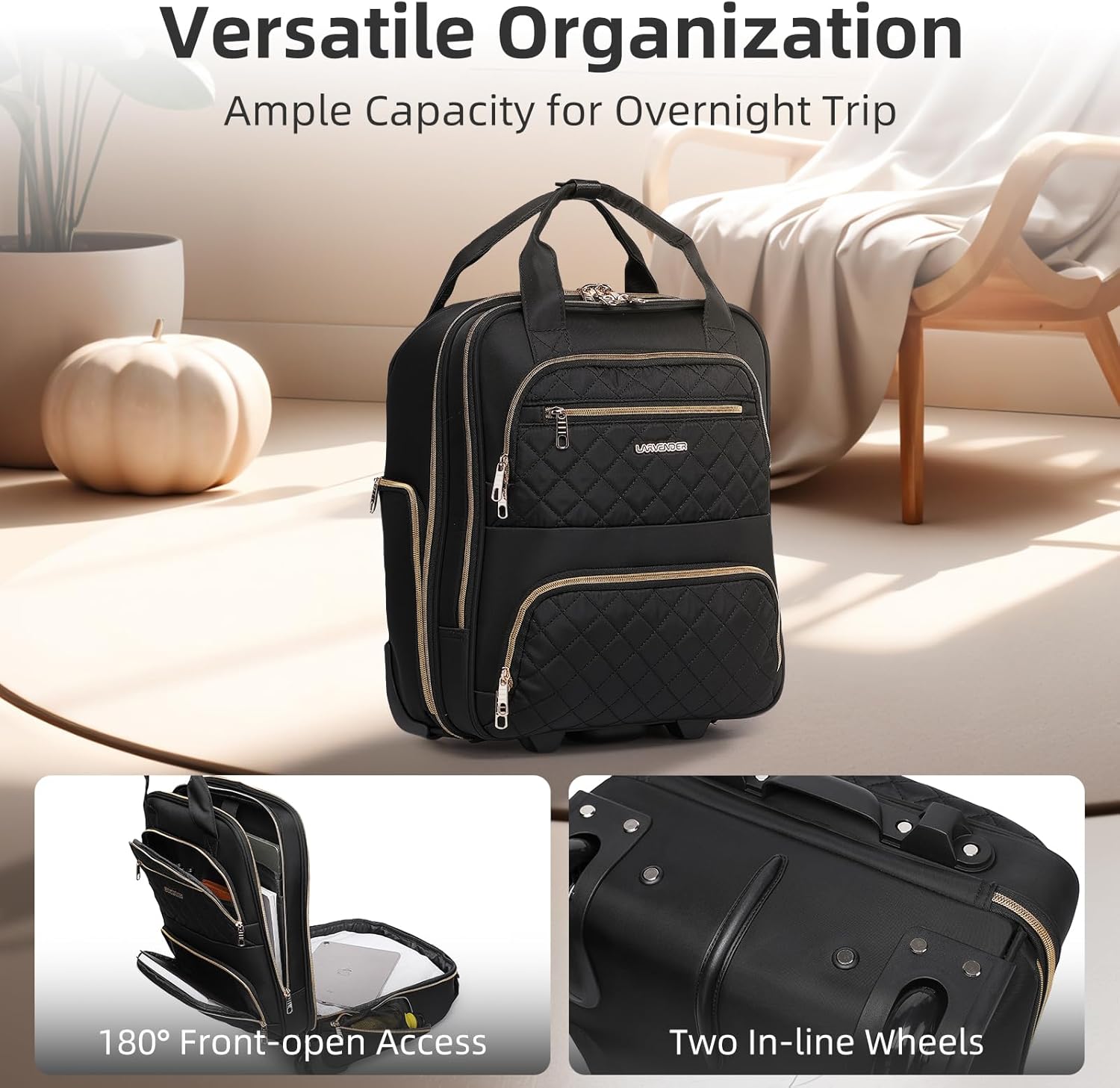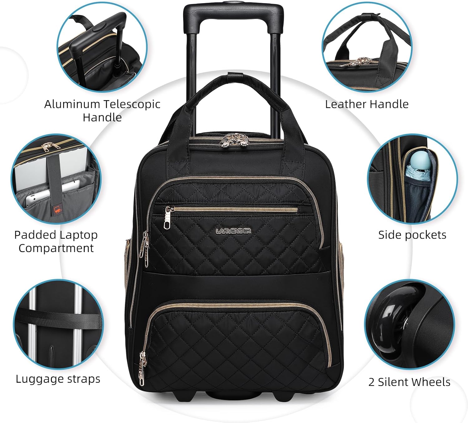 - Sturdy Yet Ergonomic: Top with a resistant iron handle, this underseat roller bag provides effortless pulling and ergonomic comfort for frequent travelers. Back with a smart sleeve to attach atop a carry-on while boarding