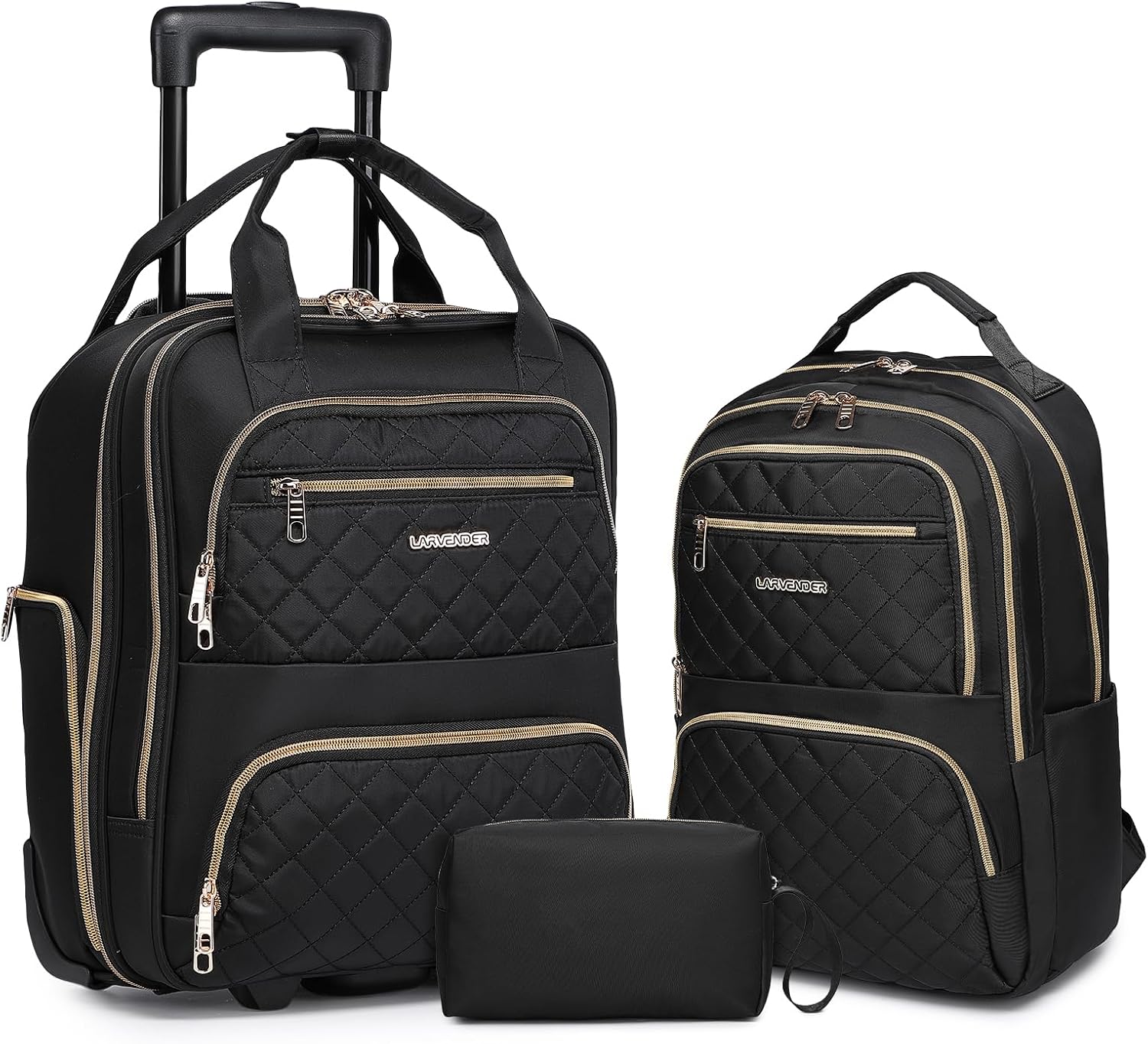 LARVENDER Underseat Carry On Luggage with Wheels Softside 16-inch Underseater Luggage Lightweight Overnight Suitcase for Men Women, Black, 3 Piece (16/BP/TB)