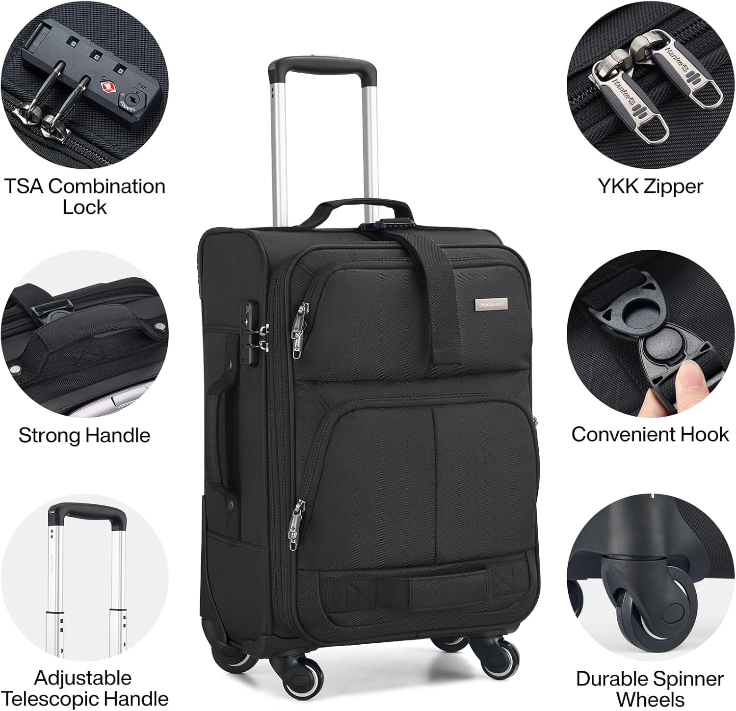 Hanke 20 Inch Softside Expandable Carry On Luggage with Spinner Wheels, Rolling Suitcase Travel Luggage with TSA Approved Luggage,Black