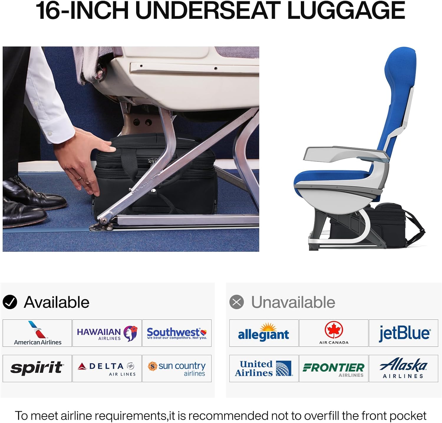 - Multifunctional Personal Item Bag: The Hanke underseat Carry-On Bag features 2 front zip pockets, 2 side pockets for a water bottle or umbrella, and even a dedicated 15.6" laptop compartment. The main compartment is roomy enough for travel essentials, complete with a dry-wet separation bag and built-in clothing straps to keep your garments neatly organized. It is ideal for 1-3 day trips