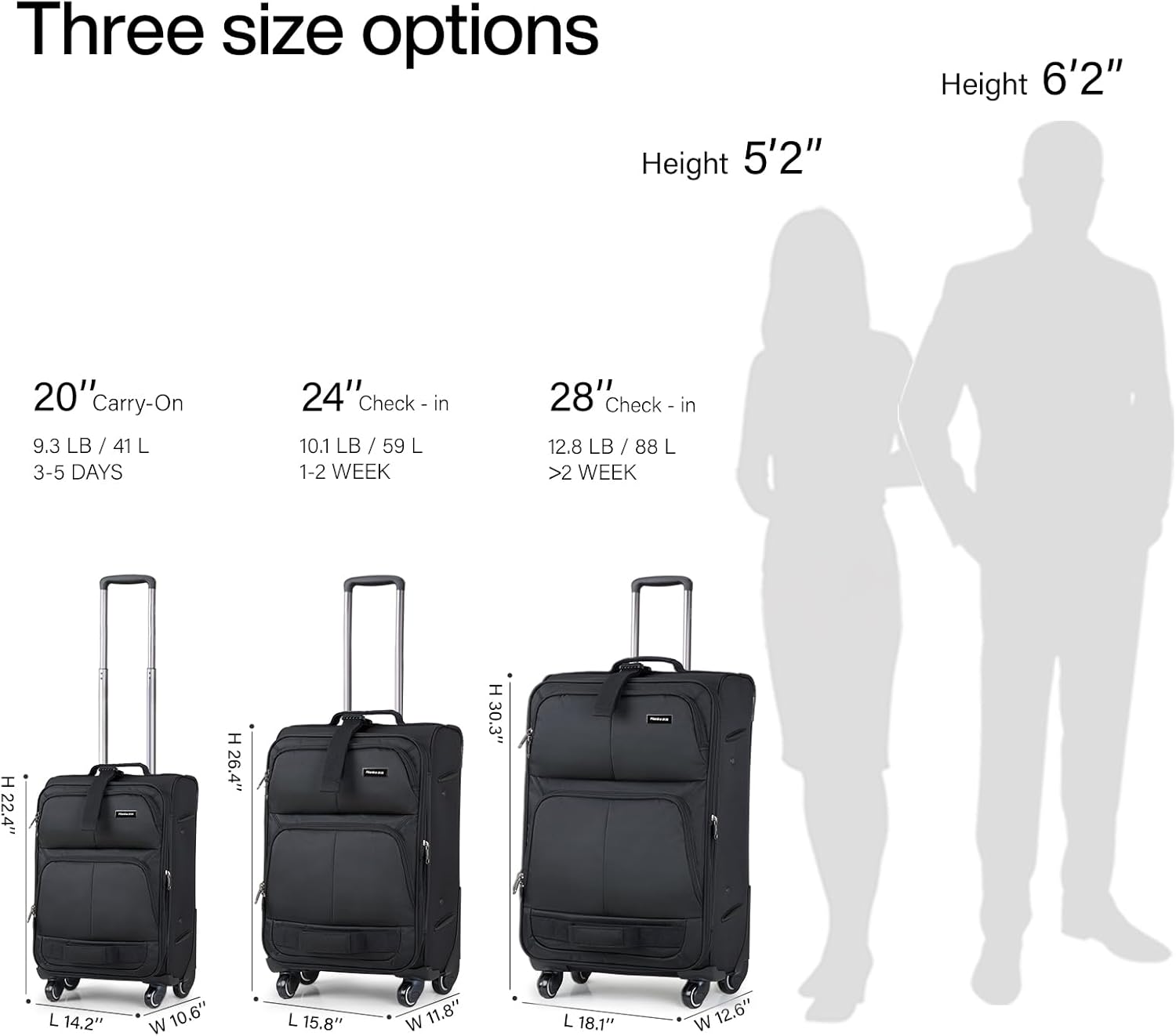 Hanke 28 Inch Softside Expandable Luggage with Spinner Wheels,Check Large Luggage Rolling Suitcase Travel Luggage with TSA Approved,Black