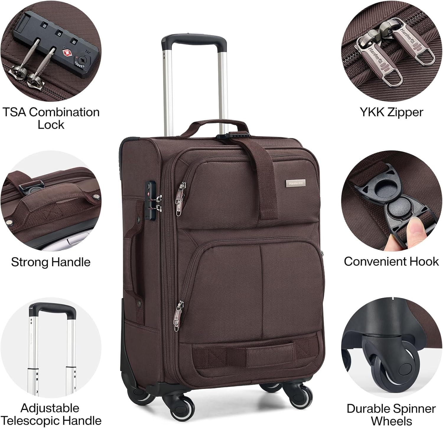 Hanke 28 Inch Softside Expandable Luggage with Spinner Wheels,Check Large Luggage Rolling Suitcase Travel Luggage with TSA Approved,Coffee