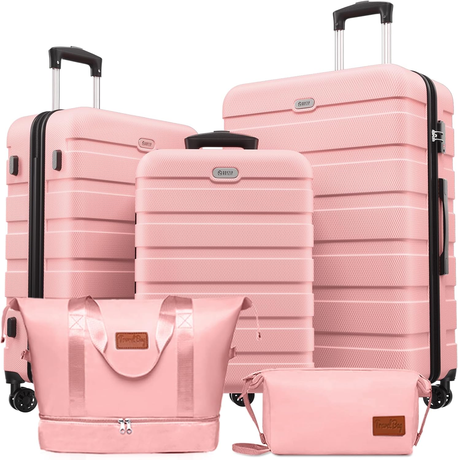 AnyZip Luggage Set 5 Piece PC ABS Hardshell Lightweight Suitcases for Travelling with 4 Universal Wheels TSA Lock Carry on Suitcase Pink