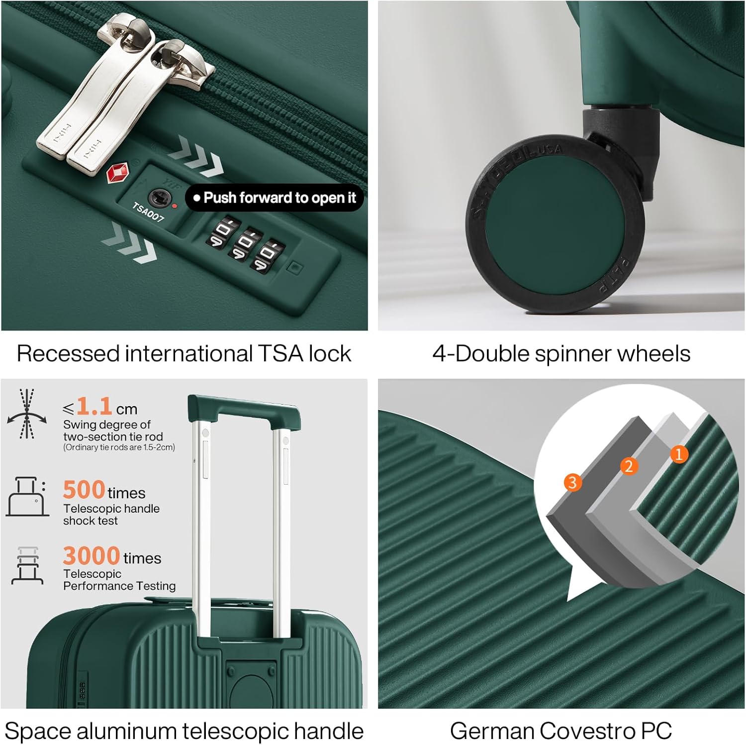 mixi Checked Luggage with Cup Phone Holder Hard Shell Rolling Travel Suitcases with Spinner Wheels,24 Inch Blackish Green