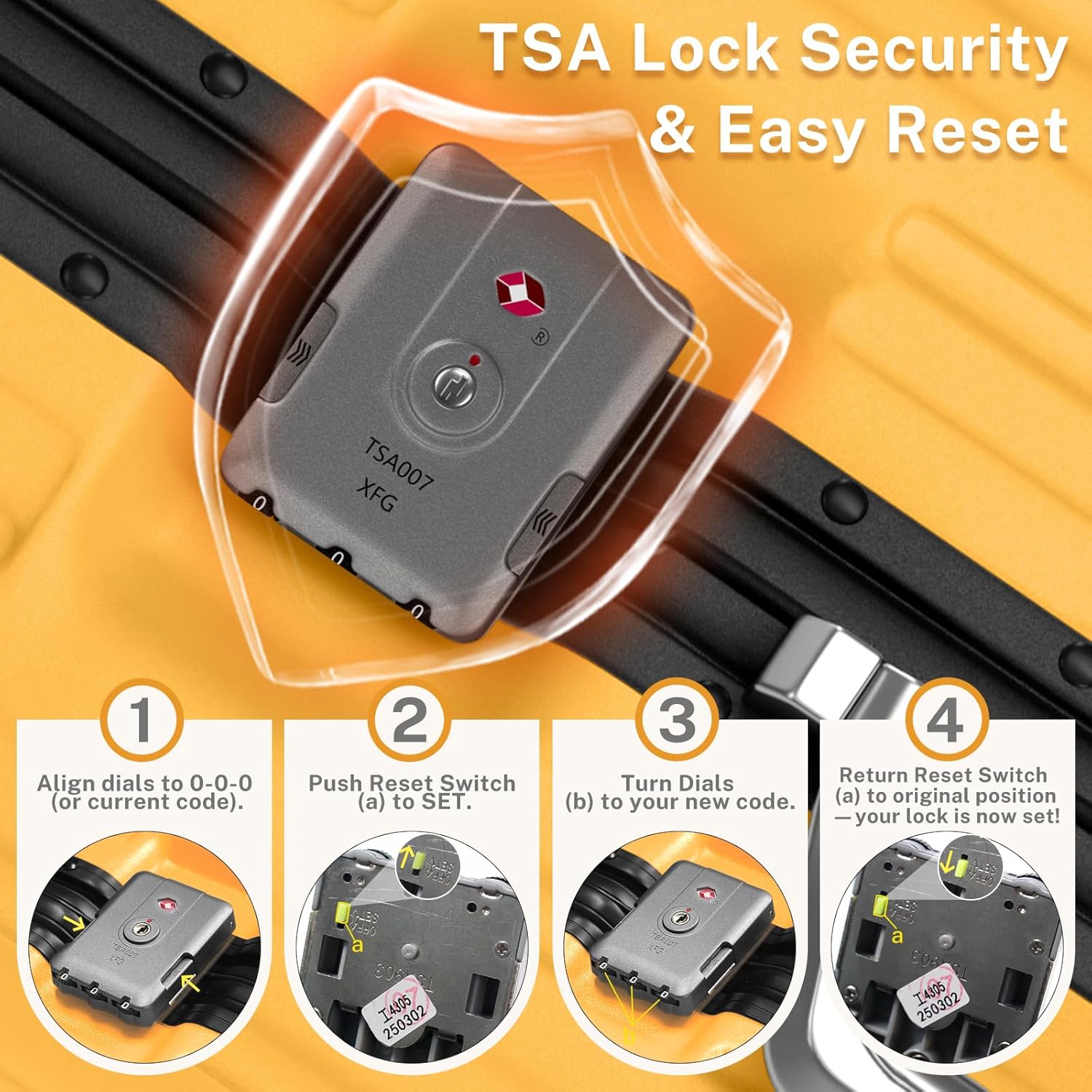 • 【TSA Lock Protects Luggage Security】Featuring a sturdy TSA lock, the suitcase enhances the security of your luggage during travel. (TSA locks do not come with keys). Its zipperless design protects belongings from unauthorized access.The zipperless design allows you to easily open the suitcase to find what you need in noisy environments without the need to go around the case a whole circle like a zip suitcase for you to open it.