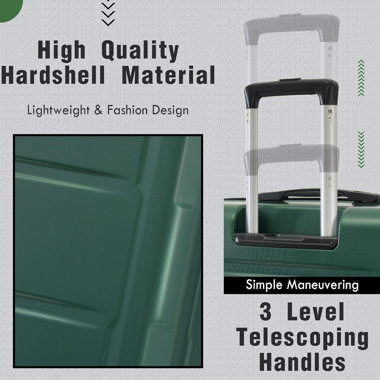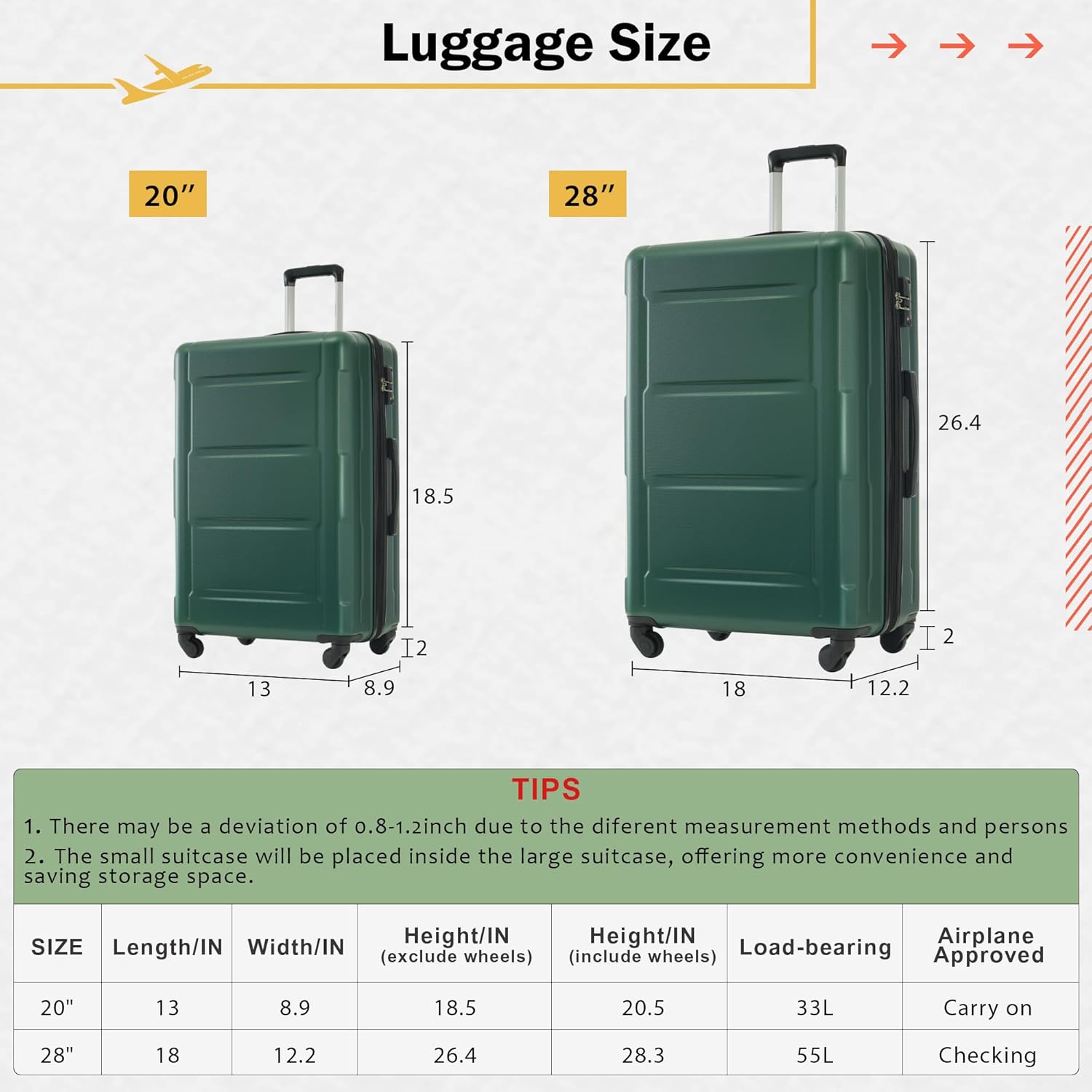 Merax Luggage Set 2 Piece Suitcase Sets with Spinner Wheel,Lightweight Hardside Expandable Travel Laggage with TSA Lock,Suitcase with Travel Bag(20"/28",Green)