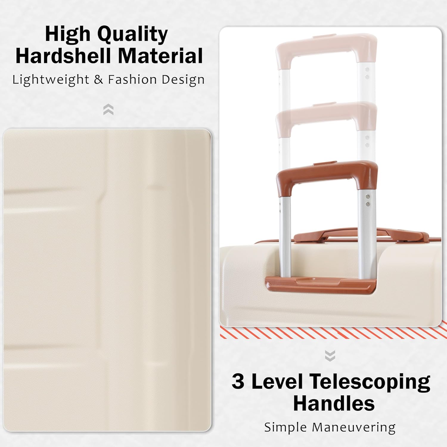 Merax Luggage Sets 2 Piece Suitcase Set, Hardshell 20 IN & 28 IN Suitcase Set with Duffel Bag, Travel Suitcases with Spinner Wheels and TSA Lock(Khaki & Brown)